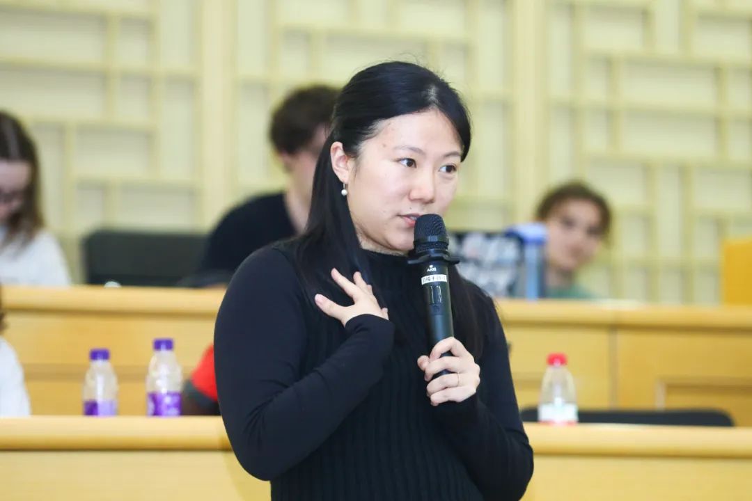 最后,董玥教授就跨文化学术研究给同学们分享了自己的经验和建议。她强调了跨文化学习的特殊性和重要性,认为这是一种难得的机会,可以让个人不断挑战自己的观念和思维方式。她指出,在跨文化学习中,人们需要以开放的态度去接受新的观点和挑战旧有的认知,这样的过程可能并不轻松,但却是值得的。董玥教授分享了自己在美国学习时的经历,提到了与同学们之间关于社会问题和历史观点的激烈讨论,以及通过争论和开放的态度达成理解的重要性。她强调了在跨文化学习中,需要保持信任和开放,以便更好地理解他人的观点,并在不同文化背景下进行批判性思考。