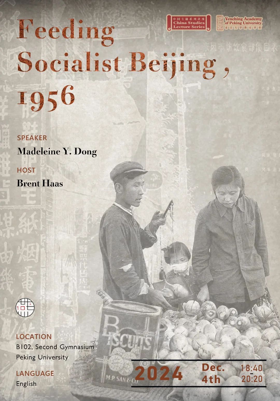 2024年12月4日,美国华盛顿大学杰克逊国际研究院和历史系的施友忠讲席教授董玥为北京大学燕京学堂的同学们带来了题为“1956年,食在北京”(Feeding Socialist Beijing 1956)的讲座。本次讲座为燕京学堂2024-2025年必修课“中国专题系列讲座”的第六讲,由燕京学堂副院长Brent Haas主持。