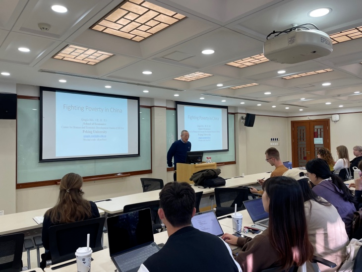 10月24日,北京大学经济学院教授刘民权在其讲授的“中国经济发展导论”课程中,邀请了经济学院教授、经济与人类发展研究中心主任夏庆杰进行题为“中国的贫困与减贫”(Fighting Poverty in China)的讲座。