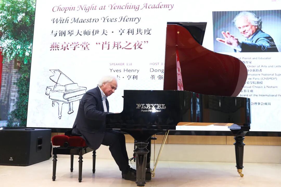 2025年11月1日晚,北京大学第二体育馆报告厅内琴声悠扬,全球著名钢琴家、教育家伊夫·亨利(Yves Henry)到访北京大学燕京学堂,为现场师生带来一场沉浸式肖邦音乐盛宴。这位集法国文学与艺术军官勋章获得者、巴黎国立高等音乐学院教授、法国诺昂肖邦音乐节主席,波兰国际肖邦协会联合会理事会成员等多重身份于一身的大师,以演奏加讲解的独特形式,搭建起跨越时空的音乐桥梁。