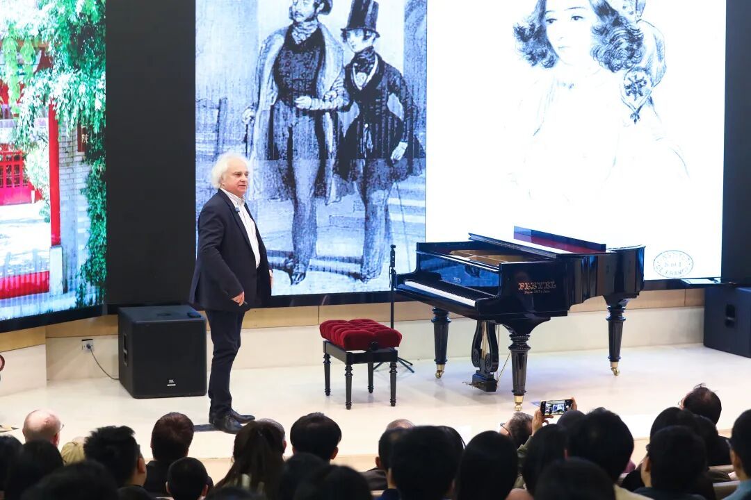 在接下来的互动环节中,有同学提问道,作为长期研究肖邦、并探访过其创作地的专家,这些经历如何影响对作品诠释?现代钢琴教育侧重技巧训练,是否应让学生更多了解作曲家相关背景,而非过度强调技巧?亨利教授回应称,创作地本身对理解音乐的影响有限,但了解作曲家生平至关重要。音乐表达源于人生经历与内心灵感,如果缺乏对作品背景的了解,就难以触及其中的深层内涵。环境、身边人等因素也会赋予创作灵感,知晓这些能让音乐诠释更贴合作品本质。
