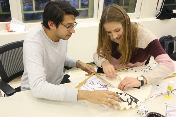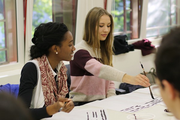 2018年10月18日下午,燕京学堂的同学们在中国山水画老师杨洁的指导下,学习并绘制了以竹为主题的折扇扇面,亲身体验中国画的魅力。作为中国文化系列沙龙之一,本次活动吸引了众多热爱中国传统艺术的同学参与。