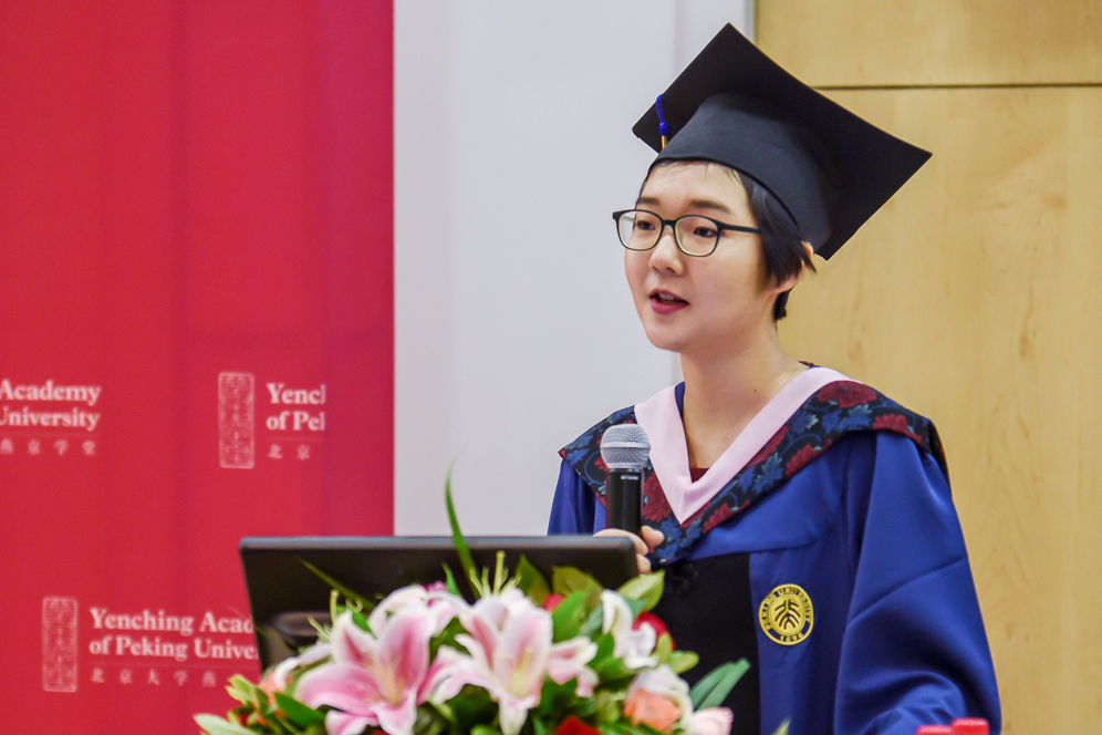 毕业之际,我们借此回顾共同度过的这两年时光,我很荣幸能站在这儿与你们分享我的感慨。坦白地说,我有点不好意思叫我自己 a Master in China Studies,因为我到底对中国有多少了解呢?回头想一下,我和中国有很长的缘分,小学的时候我跟妈妈来到中国学习了五年,在美国读大学时也一直做关于中国的研究,来到燕京学堂之后我更加集中地学习了中国的外交和军事政策,随着学习的不断深入,我越来越意识到我了解到的只是这庞大中国的一小部分,这门学问是如此的学海无涯。我相信外国和中国学生都会认同这一点。那么这份学位的真正的意义是什么呢?一番思考后,我想到了大家都熟悉的孔子的一句话:知之者不如好之者,好之者不如乐之者。在学堂的两年硕果使我对中国更情有独钟,不止在喜爱上学习这个国家,更以此为乐。