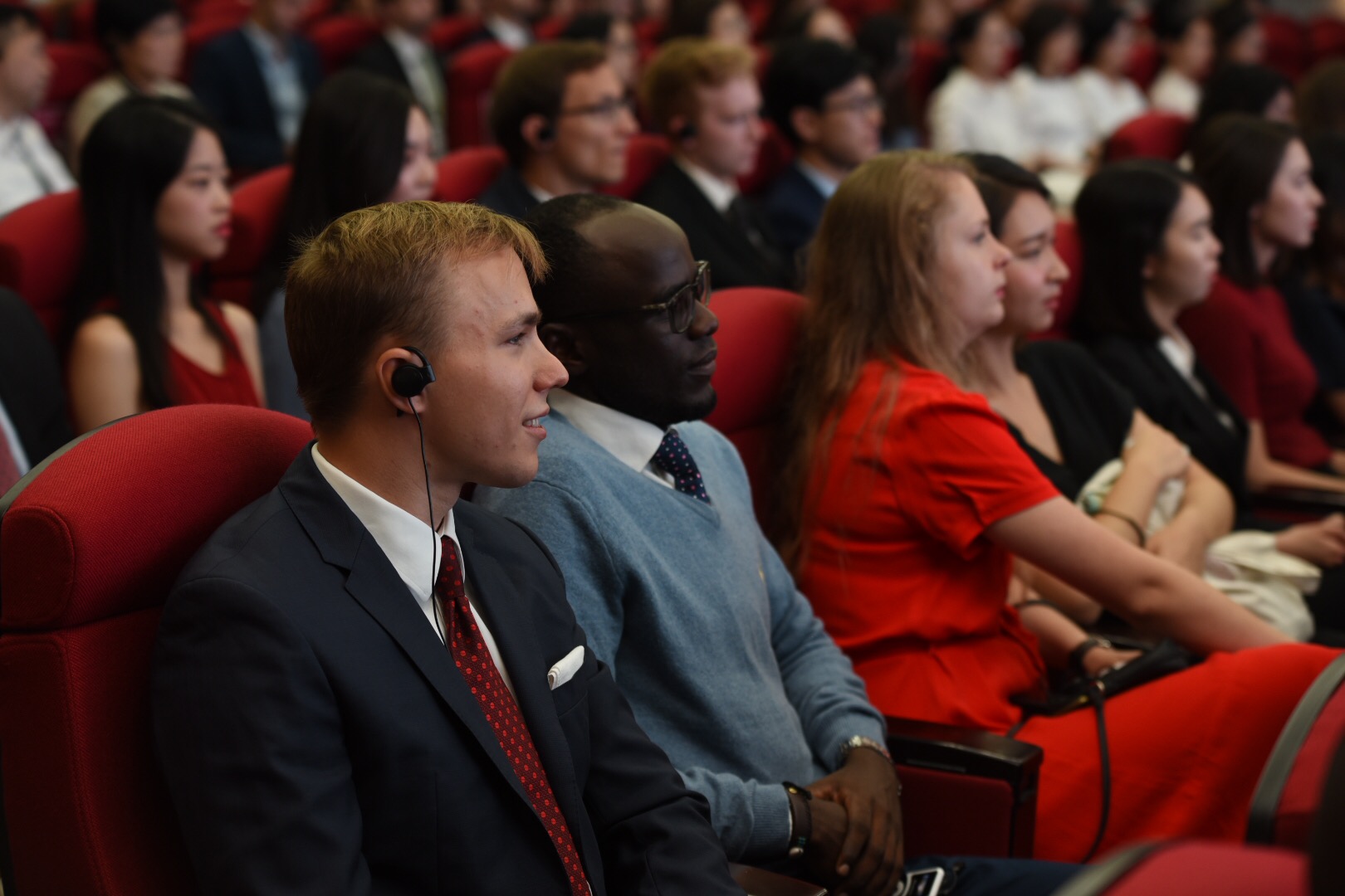 “当今国际形势复杂,世界面临多项挑战:气候问题、流行疾病、贫困等等。要想解决这些问题,需要各国人民共同参与,打破区域局限,积极加入到全球化的讨论与合作中来。来自不同背景的你们今天汇聚于燕京学堂,正是最好的体现。