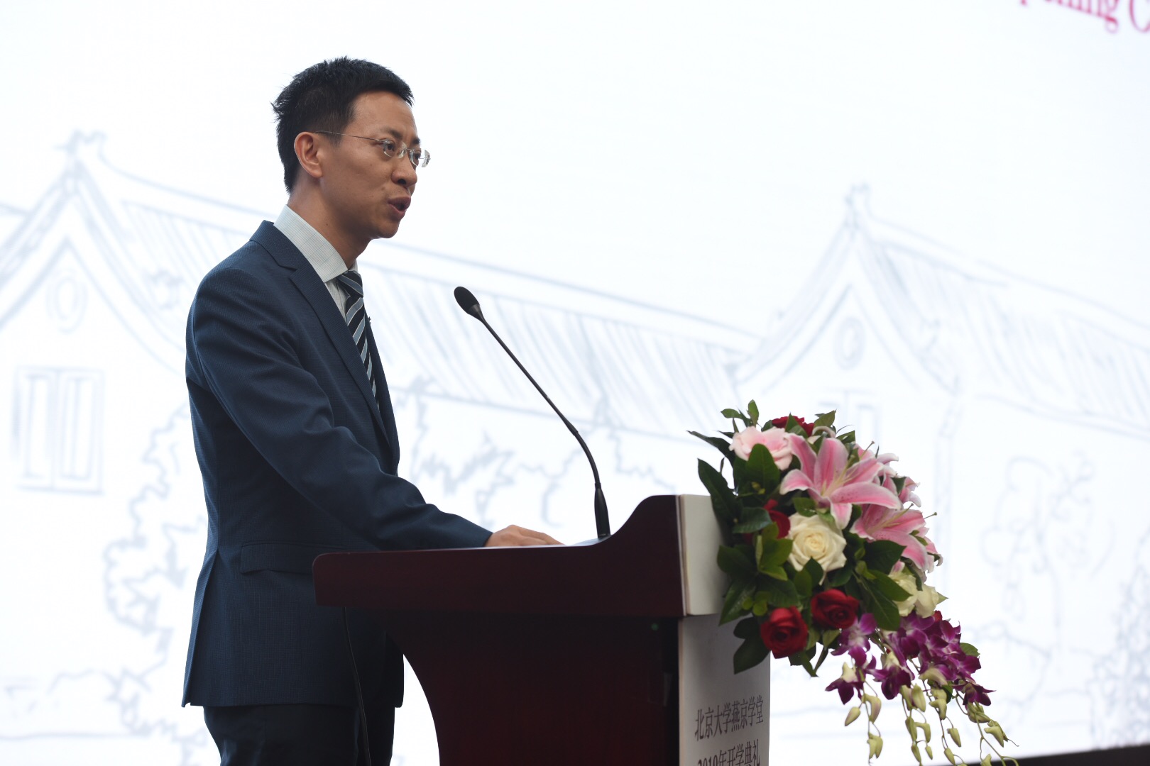 北京大学国家发展研究院教授余淼杰作为教师代表欢迎新同学
