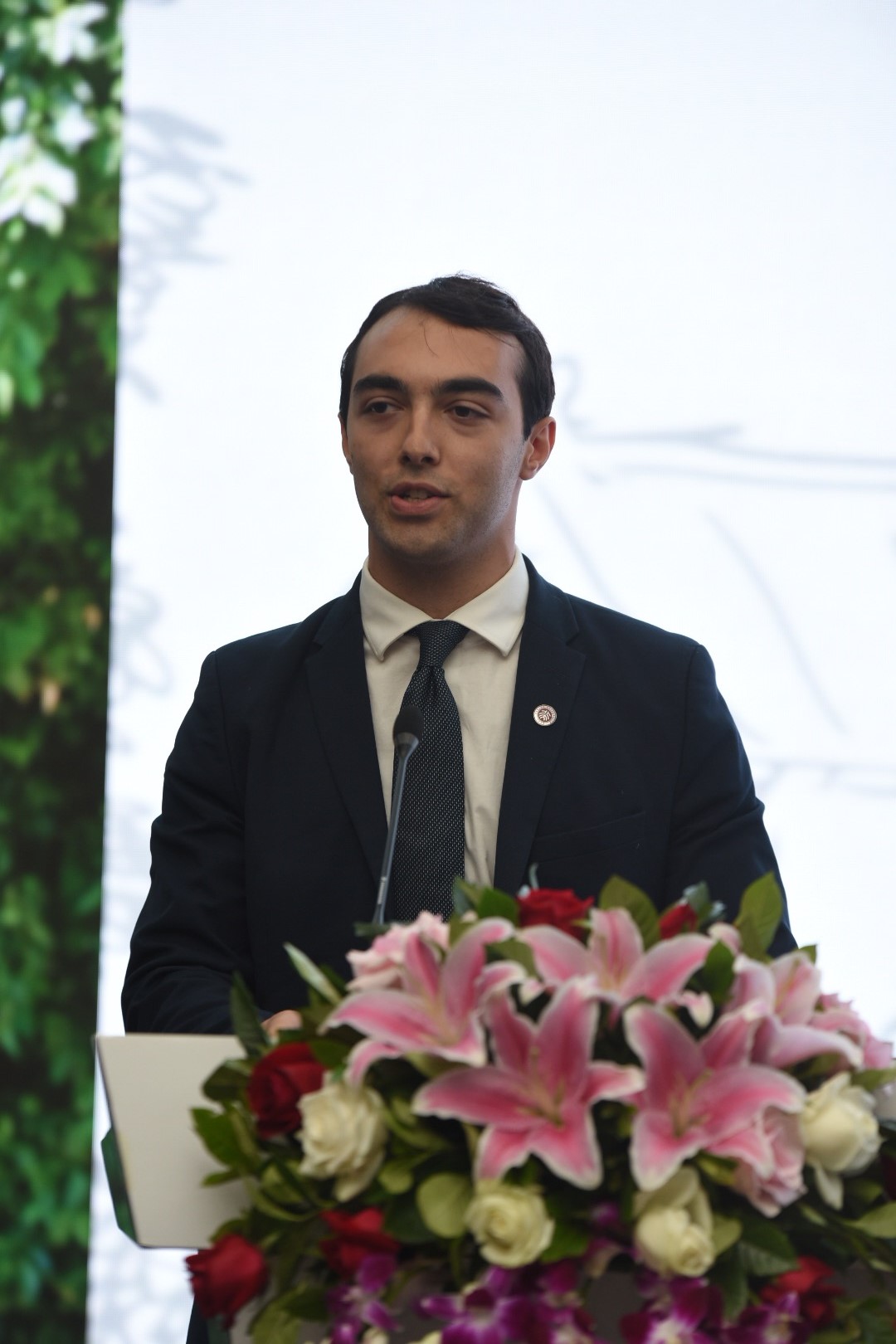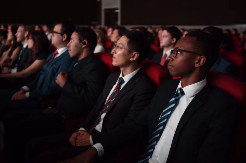 你们在一个正确的时间相遇在一个正确的地点,今日这些陌生的面孔,两年后都会成为亲密的朋友。努力学习,尽可能多地参加社团和社会活动。希望你们未来能承担起全球公民的责任,为建设更健康有序,和平和谐的世界贡献力量。”