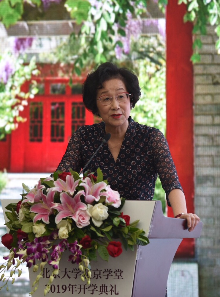 “来自44个国家和地区的125位新同学,希望你们来到北京大学后,学会“北”“大”两字:学习“北”,在这里“找到北”,用自己的头脑找到未来发展的方向;学习“大”,掌握更多的知识,扩大我们生命的内涵。