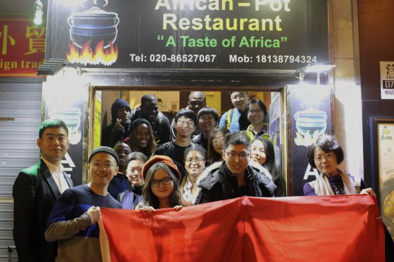 调研首站在广州最有名的非洲餐馆African Pot展开,这家西非餐厅位于越秀区广元西路通通商贸城,老板是加纳人,老板娘是中国人。同学们分组与用餐的客人们展开访谈。食客们大多是经营中非贸易的非洲商人,他们在中国采购商品,包括服饰、家具、日用品、电子产品等,再运回家乡销售,每次在中国停留两周左右,有固定的中国合作伙伴。一位女商人表示,在中国做生意并不是件轻松的事,“我们每天大概只吃两顿饭,早上起来随便吃一点,然后就要等到晚上差不多这个时候。”除了非洲商人在中国工作和生活的基本情况,同学们还询问了他们选择广州的理由、申办签证的方式、融入中国社区的情况等。