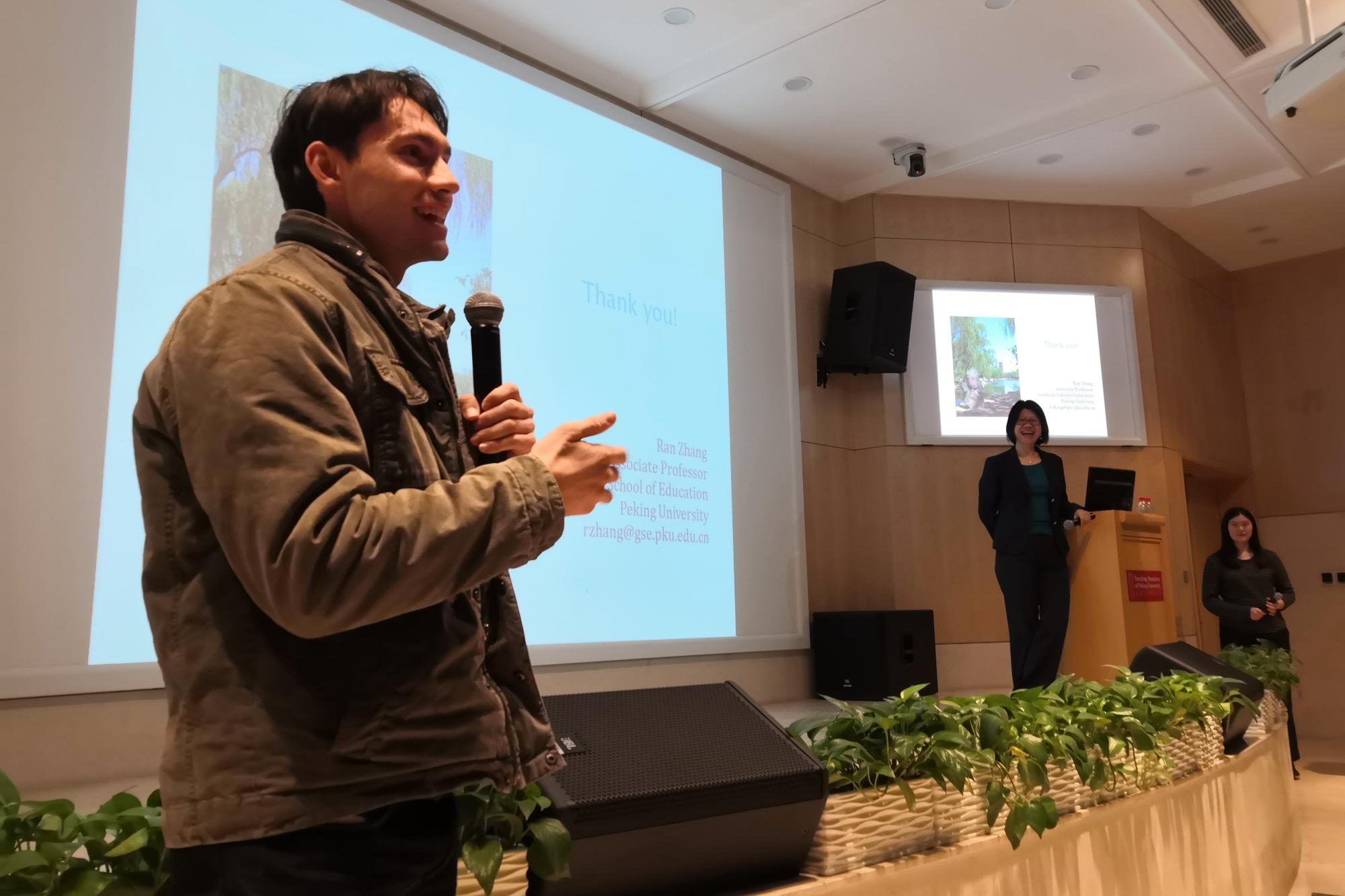 最后,张老师使用一系列的质性研究范例,展示质性研究的多种呈现方式,以及质性研究对于理解和研究中国社会变迁的重要意义。尤其值得一提的是,张老师援引的其中一篇成果是第一届燕京学堂学生Cody Abbey的毕业论文,张老师也邀请Cody Abbey来到现场,与大家一起探讨了身为外国人在中国访谈时可能遇到的情况。在问答环节里,张老师耐心地解答了同学们关于数据处理软件选择的疑惑以及访谈过程中遇到“跑题”、“滔滔不绝”受访者时的应对策略。