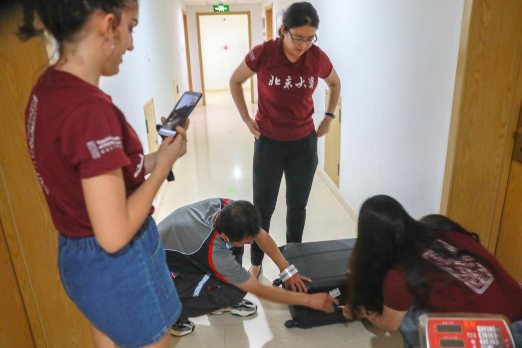 在寄送行李当天,学生志愿者现场视频连线身处不同国家的学生,物流公司员工清点和打包需要寄送的物品,学堂物业将需要寄存学校和捐赠的物品搬运至存放地点,行政部门逐一清点物品并记录在册。各个环节分工有序、紧密配合,高效地完成行李寄送工作。