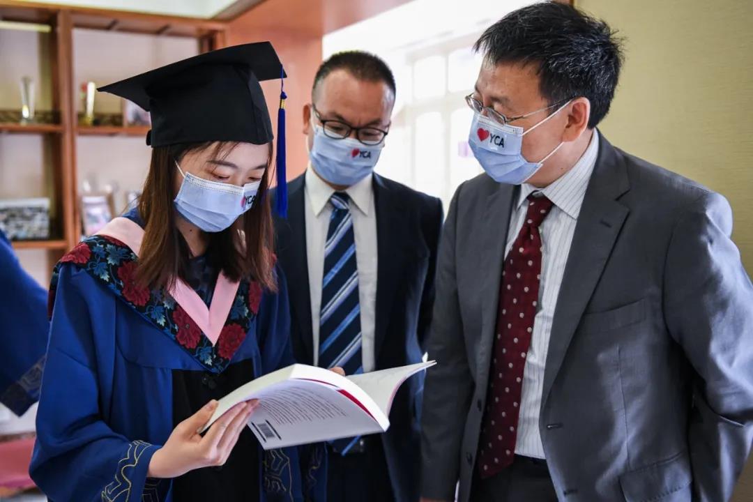 讲话结束后,Brent Haas宣读了2020届毕业生名单,大家纷纷为同学们鼓掌,祝贺彼此顺利毕业,也为即将开始的人生新旅程送上祝福。袁明院长为到场的毕业生们准备了《学问的“味道”:与燕园“大脑”面对面》书籍,祝福大家开启人生新旅程。最后,2018级黑山学生Jovana Bogojevic和中国学生孙安利随后表演了一段长笛与古筝合奏的《茉莉花》,送上她们对同学们的祝福。