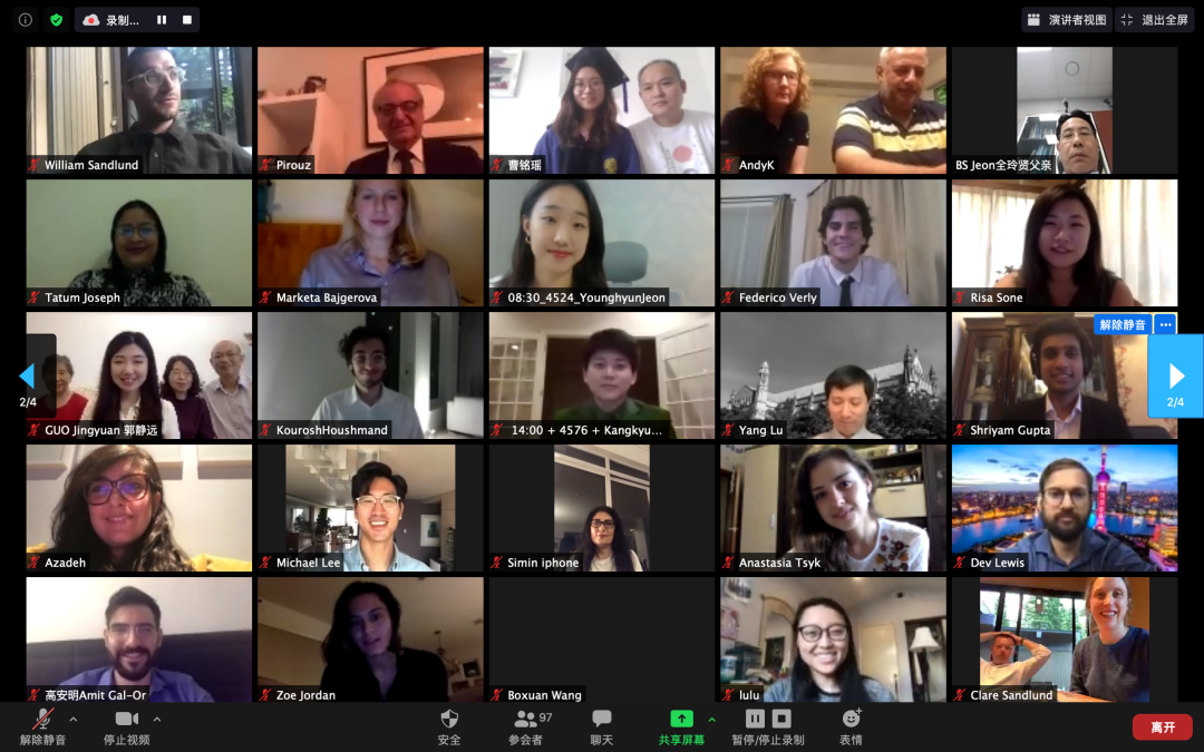 伴随着轻松愉快的视频,大家回顾了两年在学堂的生活,毕业典礼由此拉开帷幕。从在勺园宿舍注册到在校运动会夺魁,从陕西实地调研到中秋节联欢,从参观义乌小商品城到体验中华传统面人,每一张照片都让同学们回忆起共同度过的美好瞬间。