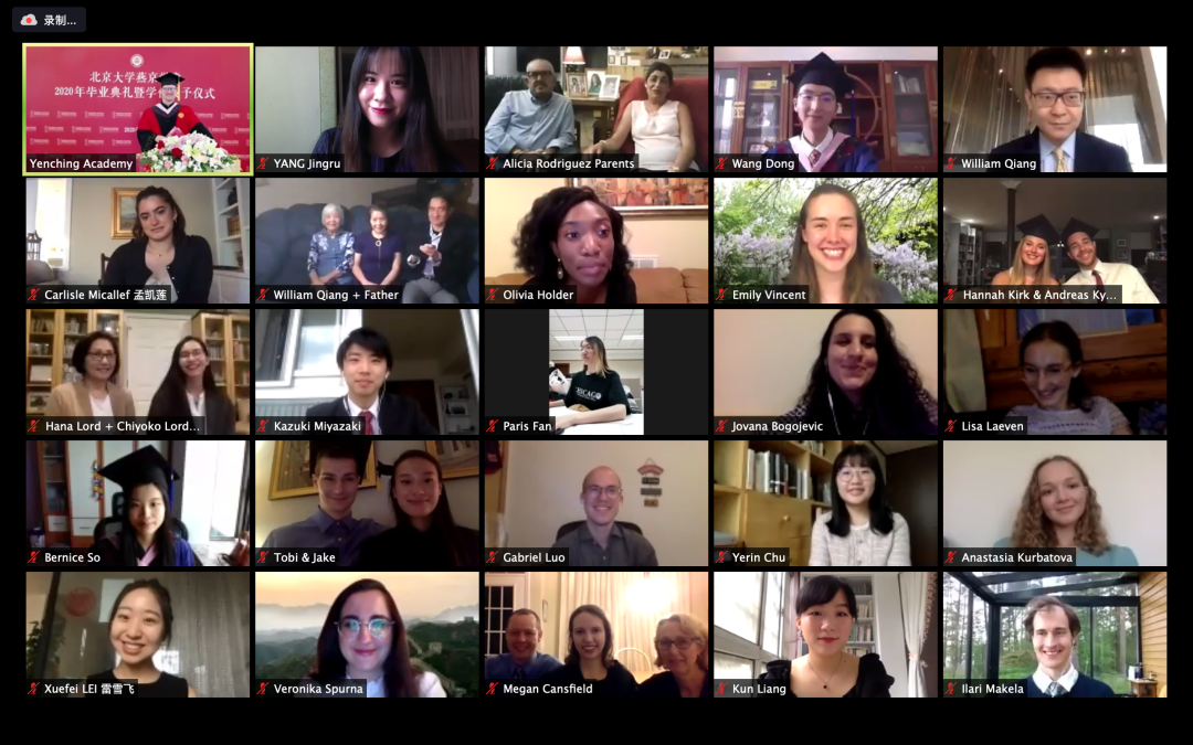 为了给同学们最好的毕业体验,燕京学堂在静园三院举行了一场线上线下相结合的毕业典礼,共同庆祝2020届毕业生们的特殊时刻。此次典礼由燕京学堂招生事务主任Brent Haas主持,北京大学副校长王博通过视频为同学们发来了祝福,燕京学堂院长袁明、副院长范士明、学业主任陆扬、院长助理陈长伟,北京大学国际关系学院副教授刘海方出席了仪式。在静园三院,有12名2018级在校毕业生参加了典礼,其他毕业生和他们的亲友通过Zoom在线上参加了活动。