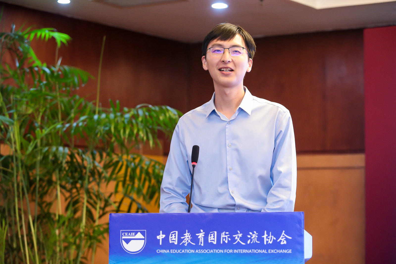 燕京学堂2020届优秀硕士毕业生、北京大学哲学系博士新生王栋作为跨文化交流的参与者讲述了“‘95后’眼中的中外人文交流”。王栋将自己在燕京学堂结交美国挚友龚迈山(Miles Graham)的经历比作中美青年的“乒乓外交”,诙谐的语言引发场下阵阵欢笑。