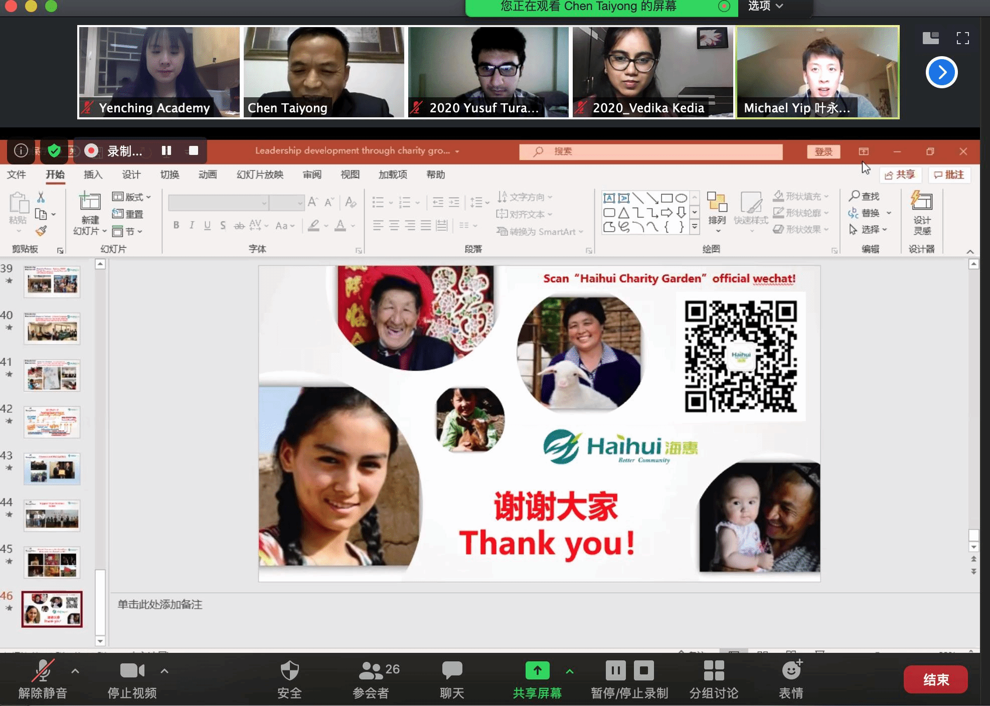 2020年10月26日,北京大学燕京学堂举办领导力培养专题线上讲座,四川海惠助贫服务中心主任陈太勇为同学们带来了一场别开生面的演讲,介绍了非政府扶贫组织“小母牛”与四川海惠助贫服务中心在中国的成长故事,并结合自身经历分享了提升领导力的经验。