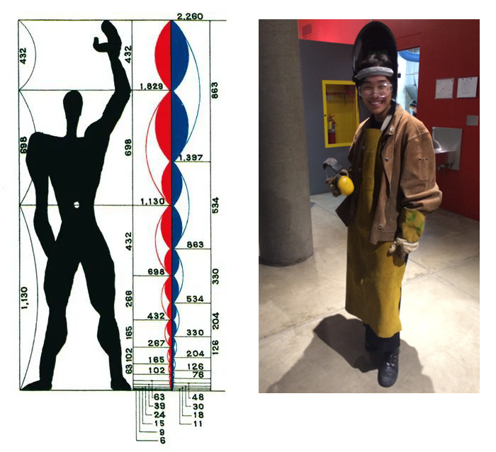 她的设计为场地装置艺术(site-specific installation),其中一个作品主体是她认为最完美的立方体,仿照柯布西耶的“模度人”要求、但批判地根据自己的身体重新定义立方体的高度。“他那是为神而建的,不是为人而建的,更不符合亚洲女性的高度。”玮欣还有幸拿到了柯布西耶调制的颜料样本,最爱的立方体,调制还原的颜色,一切将完美结合并出现在柯布西耶设计的这栋建筑里。