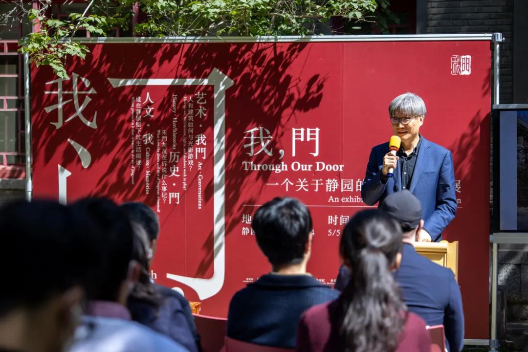 2021年5月5日上午,“我,門”跨学科文化展在北京大学静园四院开幕。北京大学副校长王博出席了开幕仪式并发表讲话。他回顾了自己与静园的故事,并提到物理空间总要跟人在一起才会变得鲜活。借用王阳明的“你未看此花时,此花与汝同归于寂”,他说“我,門”的展览就是用“我”和园子联系起来,与曾经和园子建立起联系的人连接在一起。同时,“门”又是一个开放和连通的物件,因此是跨越个人、跨越学科的。“我”有属于自我的东西,但同时“我”又和别人一起,与世界同在。