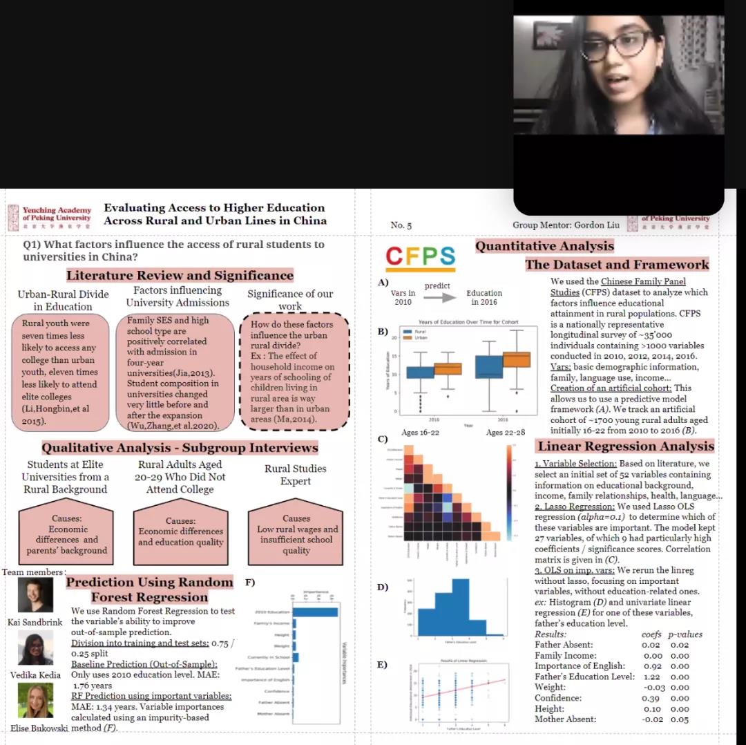 在经济领域中,城乡差距的问题引起同学们广泛兴趣,有的同学关注农村同学的高等教育机会,有的同学关注父母教育对城乡差距的影响。同学们在研究方法上扎实严谨,在有限的时间、空间内,通过访谈、实地调研、数据库搜寻、网络信息爬虫等获得一手资料,得出真实可靠的分析结果。