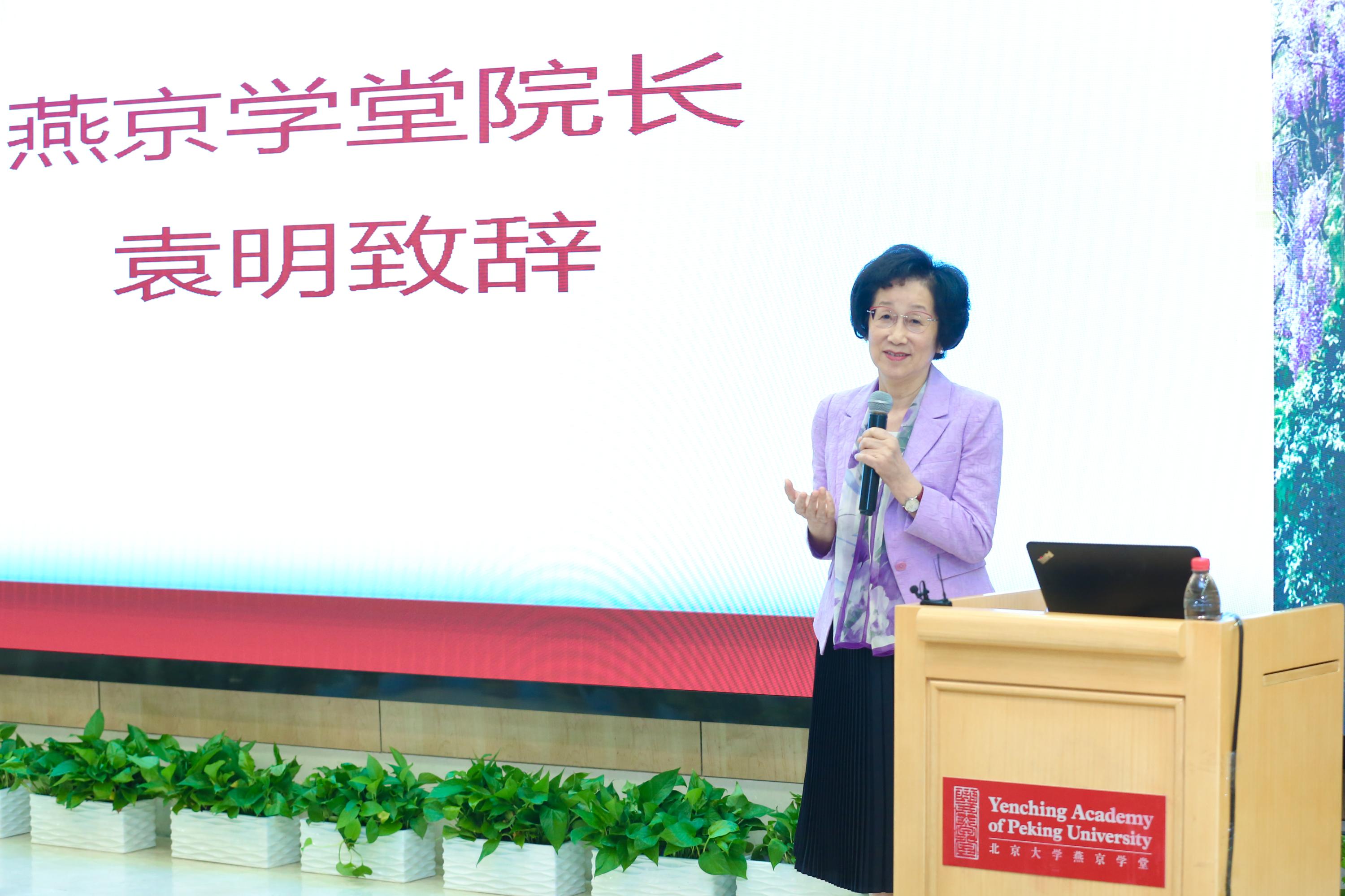 袁明院长首先为在场的同学们介绍了学堂的领导班子。接着,她与同学们分享了自己的思考。在过去百年里,围绕着“中国和世界”这篇大文章,一代代青年人在不断追问,我们的使命是什么,我们每天面对的新的问题又是什么。她鼓励同学们勤于思考,如何在强调跨文化交流的燕京学堂中学到更多知识,做更好的自己。