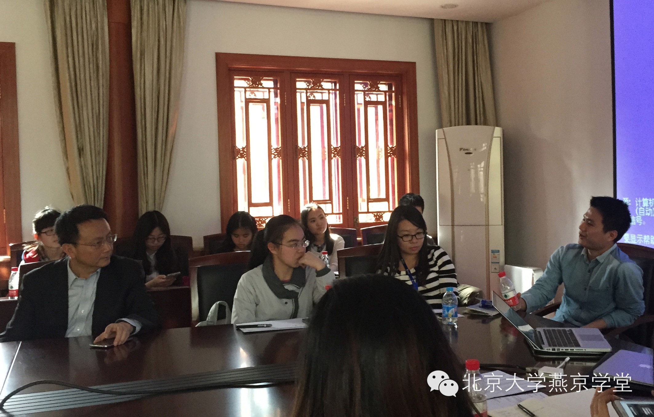 随后在下午的活动中,燕京学者与罗德学者分组前往由北京大学国际与关系学院贾庆国教授和燕京学堂副院长John Holden先生共同主持的“Contemporary Challenges on the world stage”讨论会;由北京大学生命科学学院李沉简教授主持的“Health Care Challenges in China”讲座;由北京大学光华管理学院王辉教授主持的“China’ s population structure, development and challenges”讲座;及由北京大学法学院郭雳教授主持的“Introduction of law system in China”讲座。学生们与北大著名学者进行了多种形式的互动,并就相关领域的知识进行观点的碰撞和交流。