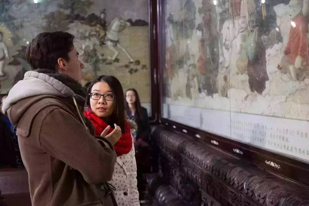 下午,在陆扬教授的带领下,燕京学子一行人来到了唐代诗人白居易曾写下“慈恩塔下题名处,十七人中最少年”的大雁塔。此诗是白居易在27岁时一举中第之后登上大雁塔所题,表达了年少得志的喜悦。同样,年轻的燕京学子们也都满怀着探索中华古代文明的豪情壮志,纷纷登上大雁塔,以感受萦绕在这屹立千年而不倒的唐代佛塔周围的文明气息。无论是建筑的美感还是设计的精妙,大雁塔都给燕京学子们带来了深深的震撼。来自中国的付端凌如此表达了她对此次大雁塔之行的看法:能够参观如此精美壮观的唐代佛塔建筑是一种荣幸,一千多年前的建筑设计能够保存至今让人觉得不可思议。可以和其他同学老师们一起感受古代文明的精华,是非常特别的经历和体验。