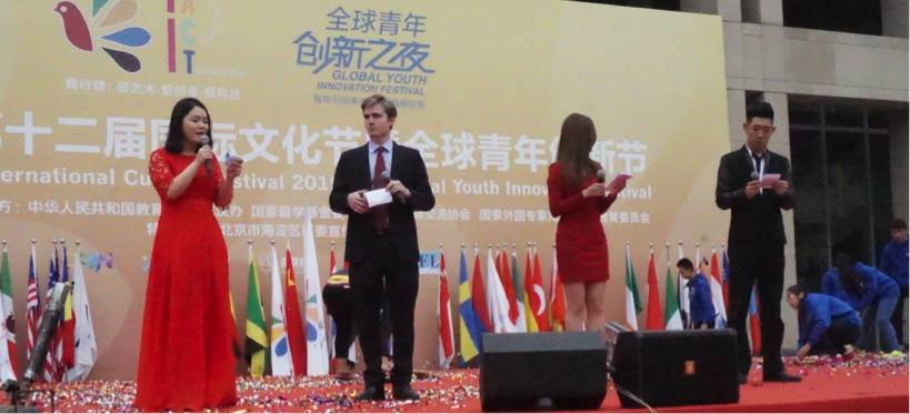 北京大学第十二届国际文化节暨全球青年创新节在百周年纪念讲堂广场隆重开幕。燕京学堂学子积极参与,构成了文化节上靓丽的风景线。