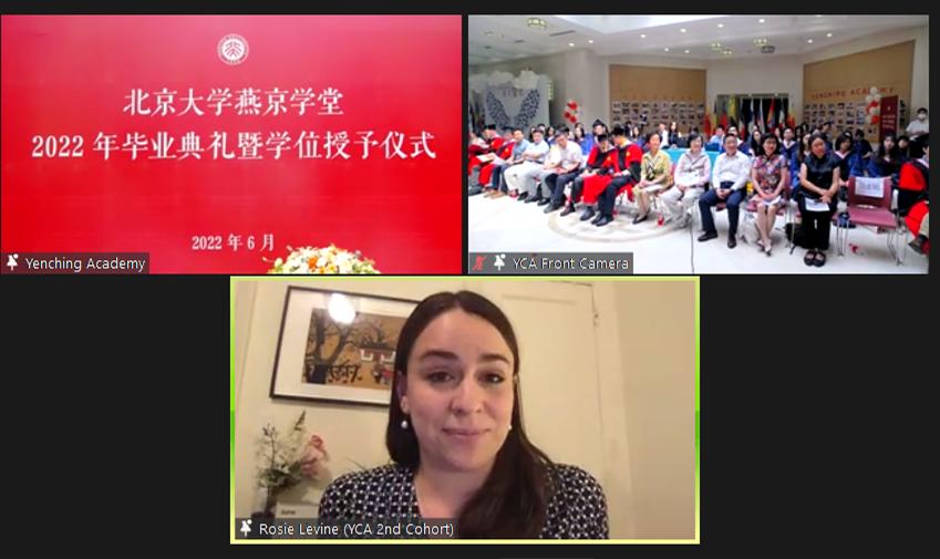 Rosie表示今年的毕业生们令她感动,在疫情影响下,大家仍出色地完成了学习、工作,取得了非凡的成就。最后,她祝福所有毕业生们前途顺利,燕京学堂大家庭永远陪伴在大家身边。