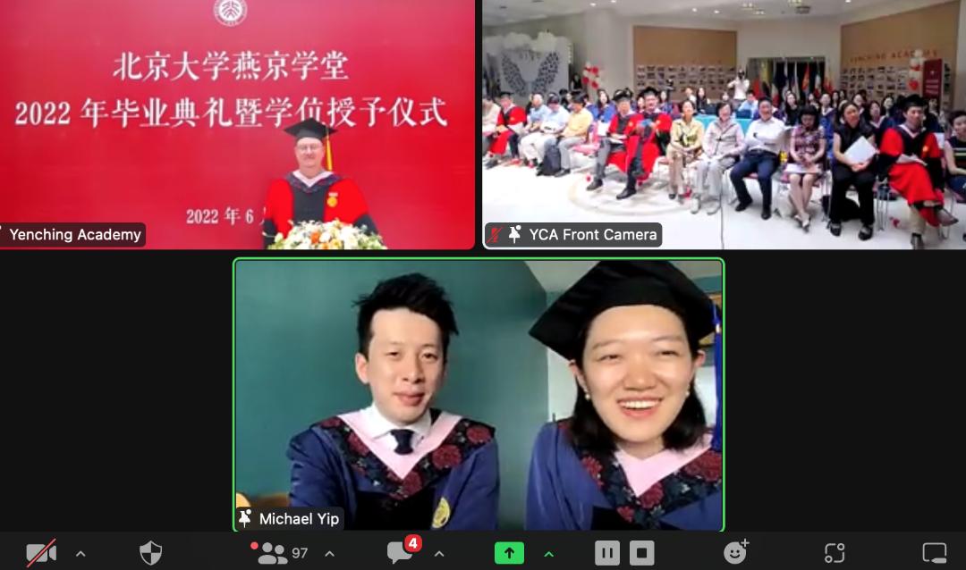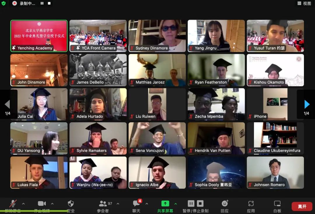本次毕业季,燕京学堂提前将学位服寄到全球每一位同学的手中,在线参加毕业的同学们也都穿戴整齐,在亲友身边,完成这一庄重的仪式。