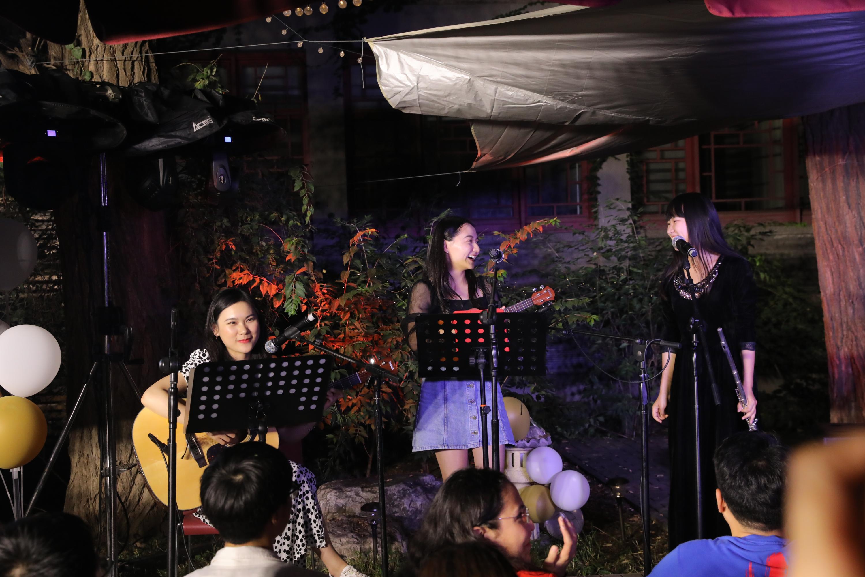 热衷于跨文化交流的彦君,在学堂也体验到了“以琴会友”的乐趣。开学典礼上与Joshua合奏《高山流水》,成了她两年里印象最深的一件事。因为两人都缺少中西乐器合奏的经验,也没有线下排练的机会,彦君和Joshua起初十分担心合奏效果,但后来在开幕式看到视频时,大家都觉得非常美妙,更有外国同学告诉彦君自己很喜欢他们的表演,还把视频播放给家人观看,引发了更多人对于中国古典音乐的兴趣。这种演奏模式也启发了彦君,后来,她和Joshua在“我,門”跨学科文化展开幕式上再次合作,还和中国同学罗含艺、林雨虹组成了自己的校园乐队Four Y,把中西结合的演奏方式借鉴到表演中,并且登上了静园和百周年纪念讲堂的舞台。