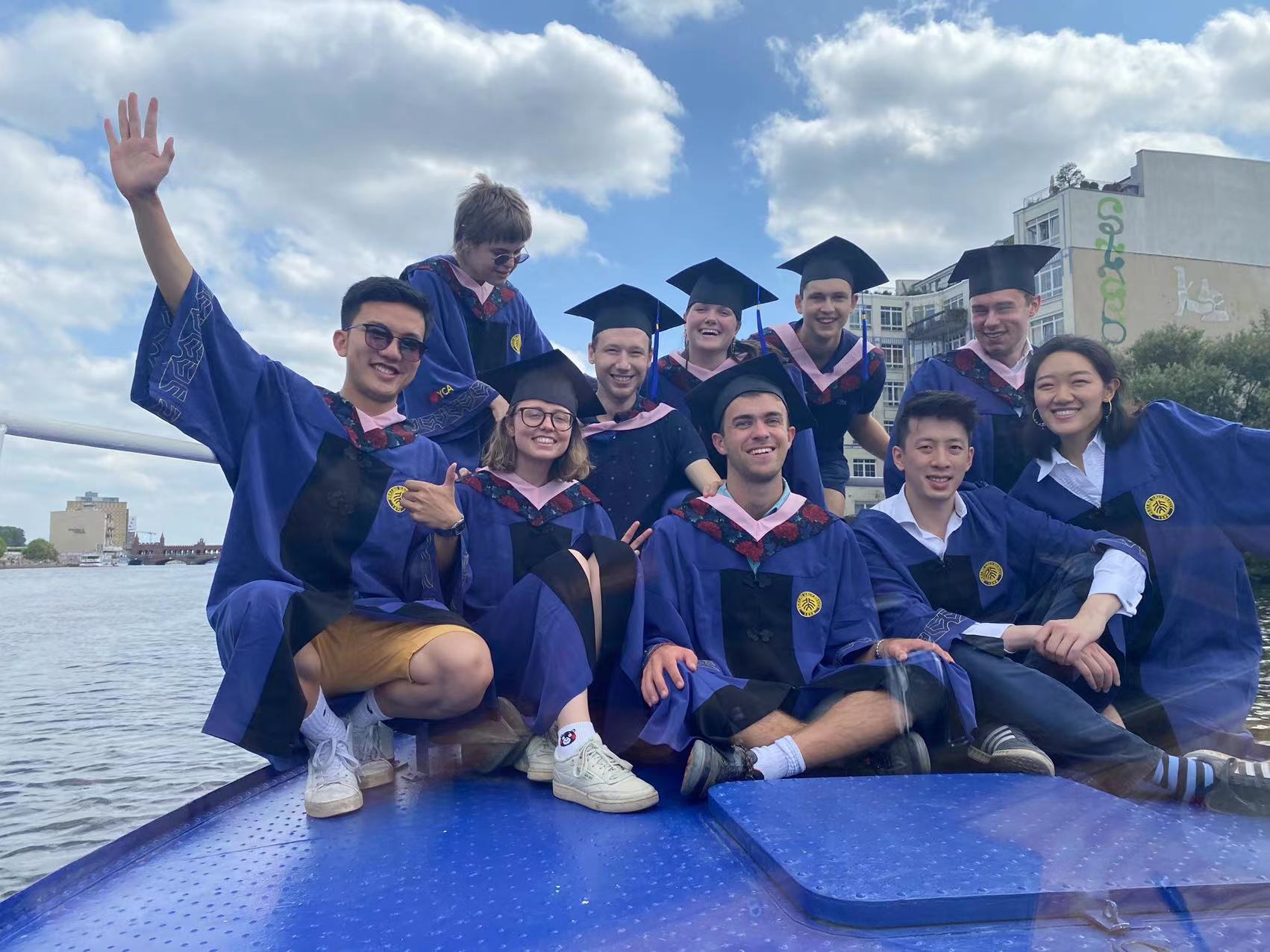 校友秘书刘瑞文组织大家在柏林的母亲河施普雷河的游船上共同庆祝毕业,在欣赏城市美景的同时,也留下了珍贵的毕业合影。第二天,大家一起品尝中国传统火锅美食,共话两年珍贵的同窗情谊。