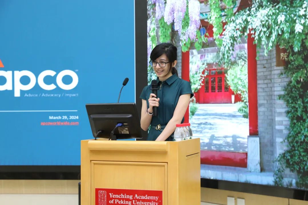 招聘宣讲环节,安可咨询、Antikythera at Berggruen Institute、博古睿研究院中国中心、中国英国商会以及美团等企业的招聘负责人齐聚二体B101报告厅,详细介绍了各自公司的概况和招聘信息。燕京学堂2022级学生Emma Ferguson(美国)主持了这场宣讲会。