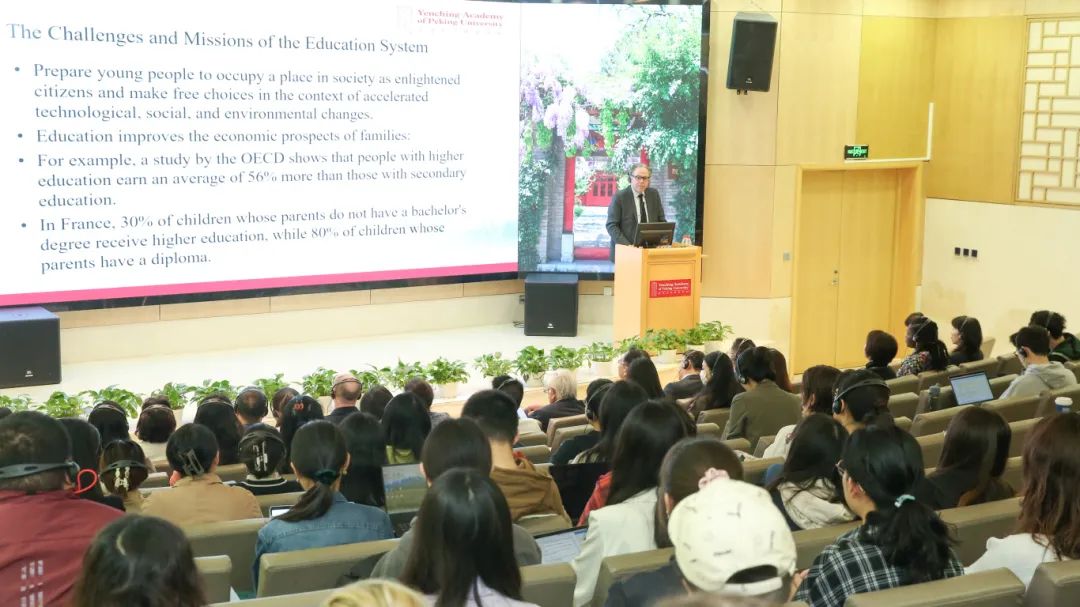 北京大学教育学院副院长哈巍,北京大学新结构经济学研究院资深实务专家、国际发展合作部主任于佳及其他到场师生先后提问。夏岱尔先生就学术产业集群、非洲法语区发展、中法合作、语言学习、比较教育体制等问题进行了解答。