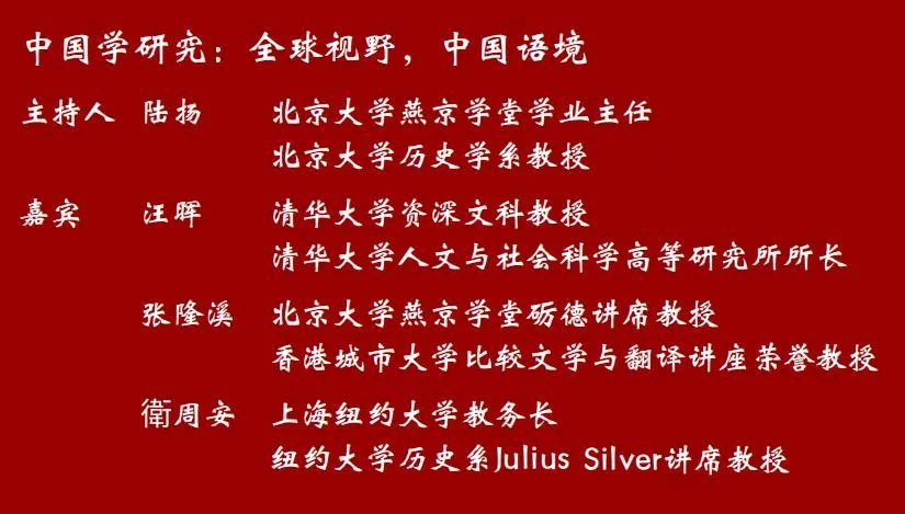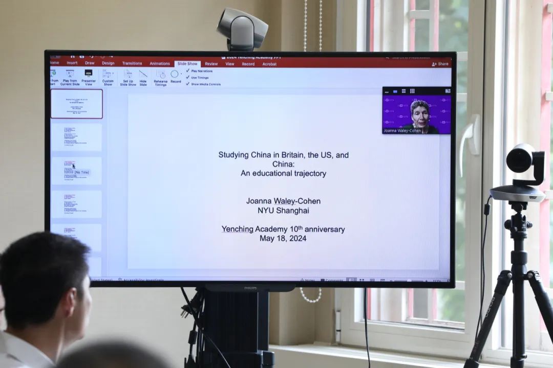 本次研讨会第一场专题讨论题为“中国学研究:全球视野,中国语境”,由陆扬教授主持。陆扬教授首先介绍了该场专题讨论出席的嘉宾,并强调本次研讨会的目的在于借北京大学燕京学堂成立十周年的珍贵机会,和各位学者共同回顾并探讨中国学研究的历史发展与未来方向,这在中国全球影响力和作用日益提升的当下具有重要的研究意义。接着,上海纽约大学教务长、纽约大学历史系Julius Silver讲席教授Joanna Waley-Cohen(衛周安)线上参加研讨,她回顾并探讨了19世纪以来中国学在英国和美国的发展沿革史。在此基础上,她充分探讨了20世纪80年代以来,中外合作办学对于中国学研究及学者的重要意义。衛周安教授认为,这种合作不仅使得学者们可以结合理论学习和实践经验加深对中国的了解,建立扎根于中国开展研究的坚实基础,也能让来自中国和全球各地的青年学者得以互相尊重、包容、学习,了解中国和西方对世界的不同看法,以不同的文化视角观察世界,并理解彼此文化的微妙和复杂性。