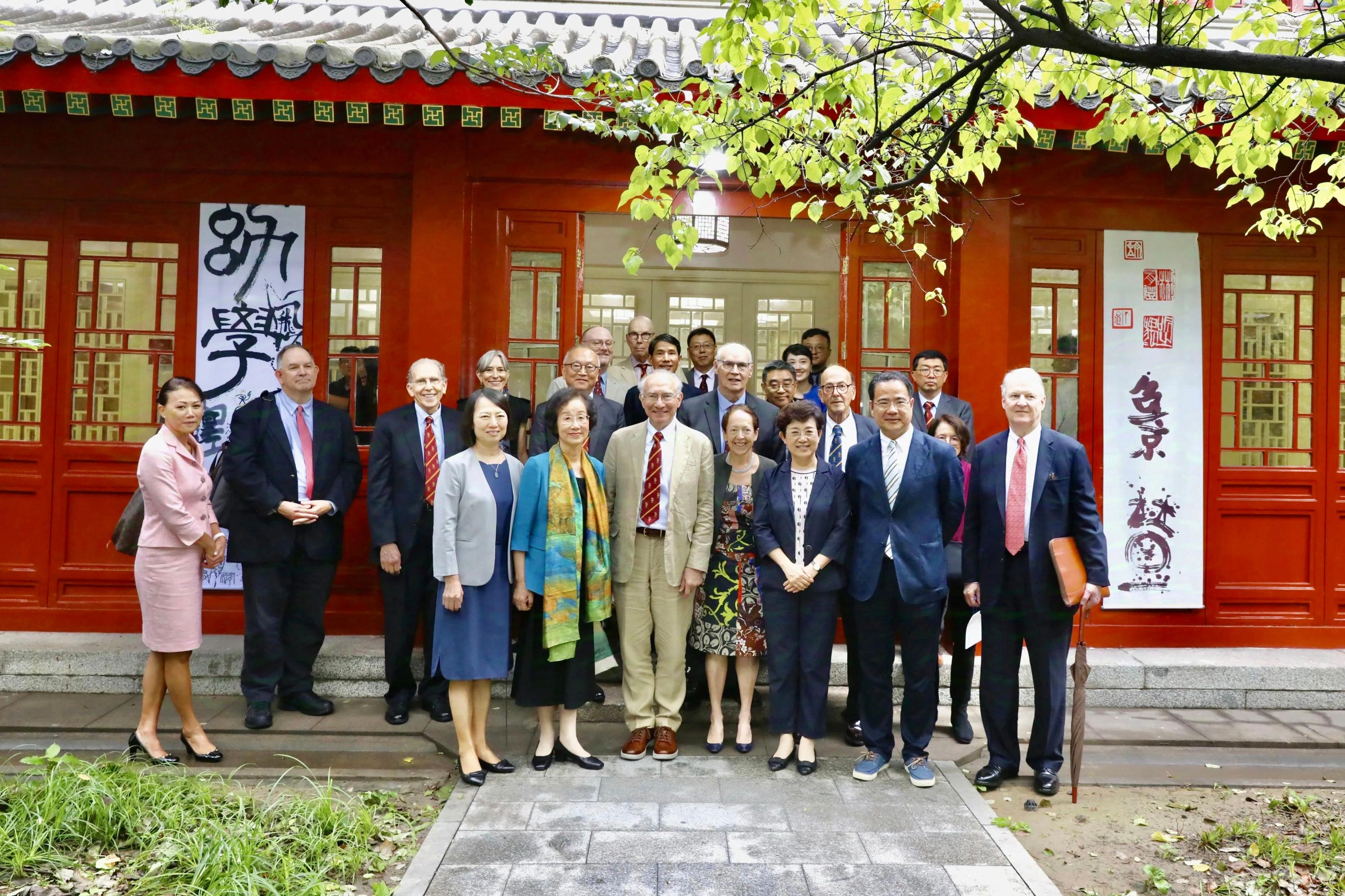 北京大学常务副校长乔杰,燕京学堂名誉院长袁明、院长董强、副院长范士明与Brent Haas等在静园四院接待了代表团一行。