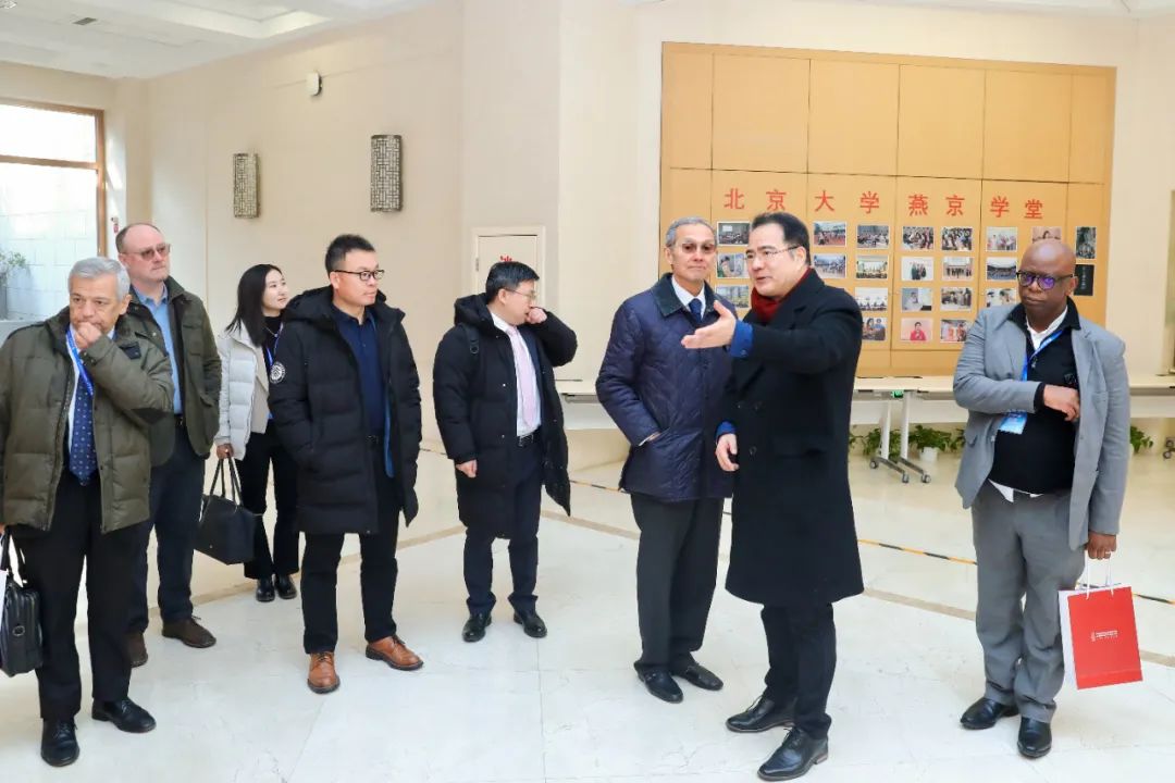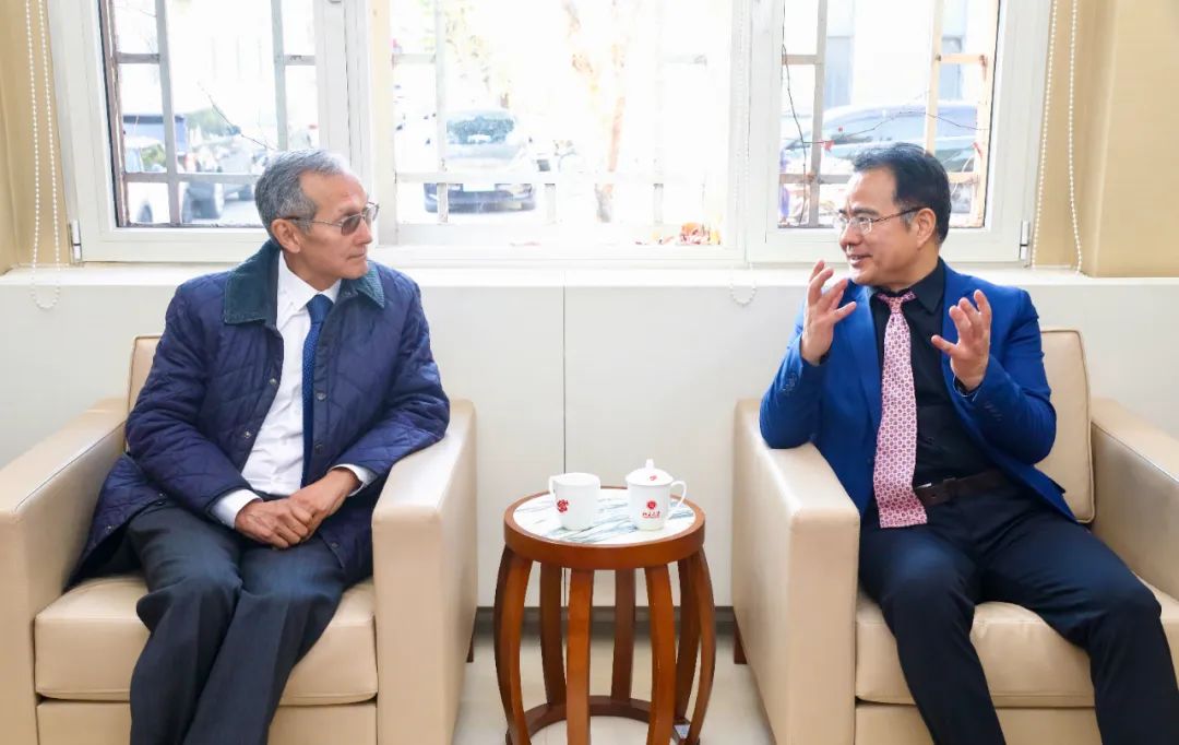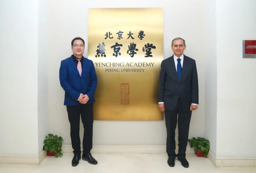 奥托尔巴耶夫先生对学堂的学生入学中文水平、招生标准以及社交活动等方面表示了关切,并进行了详细的询问。对此,Brent Haas副院长向来宾进行了详尽的介绍。他指出,学堂在招生时注重学生整体的综合素质评价,而非单一的考核指标。学堂依托北京大学在人文、社科领域的深厚历史积淀和雄厚师资力量,学生们可以根据自己的兴趣爱好选择其他院系的课程,并积极参与北大的各项学生活动。毕业后,学生们的就业渠道也十分多元,包括继续深造读博、进入企业等。