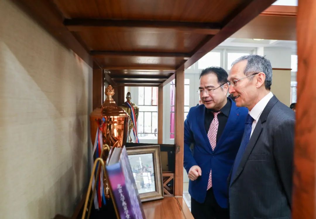 随后,董强院长带领外宾们参观了静园三院、四院及二体,向大家展示学堂的上课环境及整体风貌。