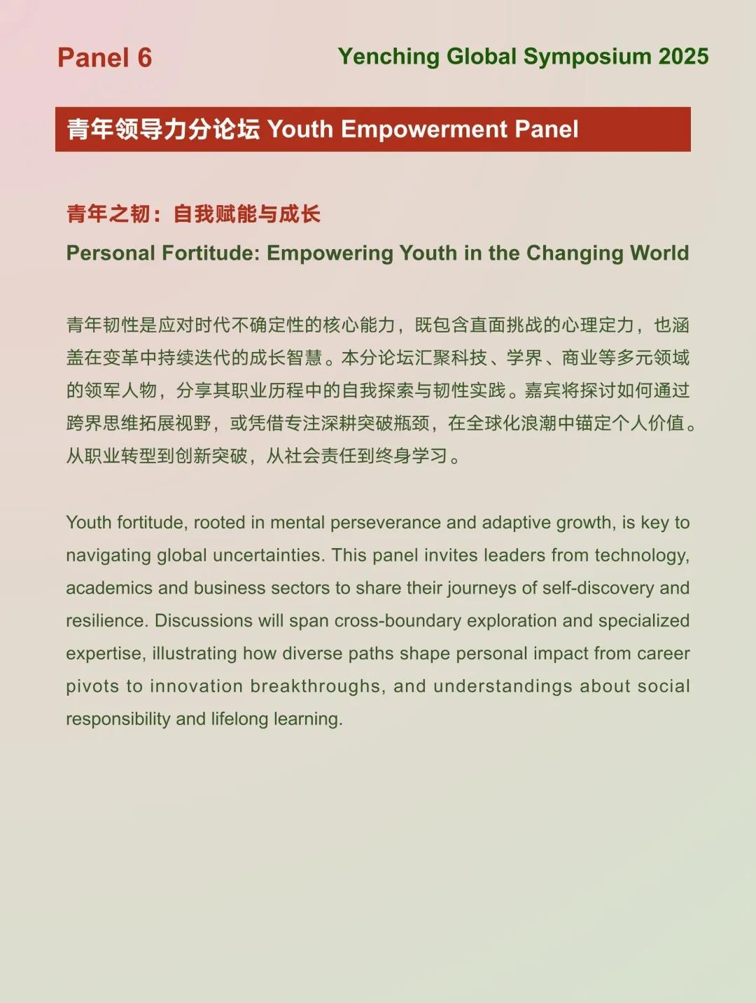 “青年之韧:自我赋能与成长”,关注青年在不确定环境中的领导力塑造。