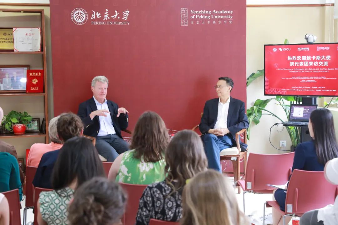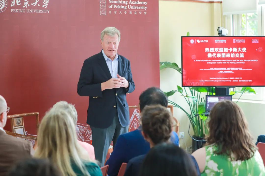 2025年5月21日,美国前驻华大使马克斯·鲍卡斯(Max Baucus)及其率领的马克斯·鲍卡斯研究院学生代表团到访北京大学燕京学堂,与燕京学堂师生进行了深度交流与沟通。此次活动由北京大学国际关系学院教授王栋和燕京学堂副院长Brent Haas主持,燕京学堂院长董强,全国政协常委、北京大学国际关系学院教授贾庆国参加。大家针对中美关系的延续与变革、青年参与全球治理等重要议题展开对谈。