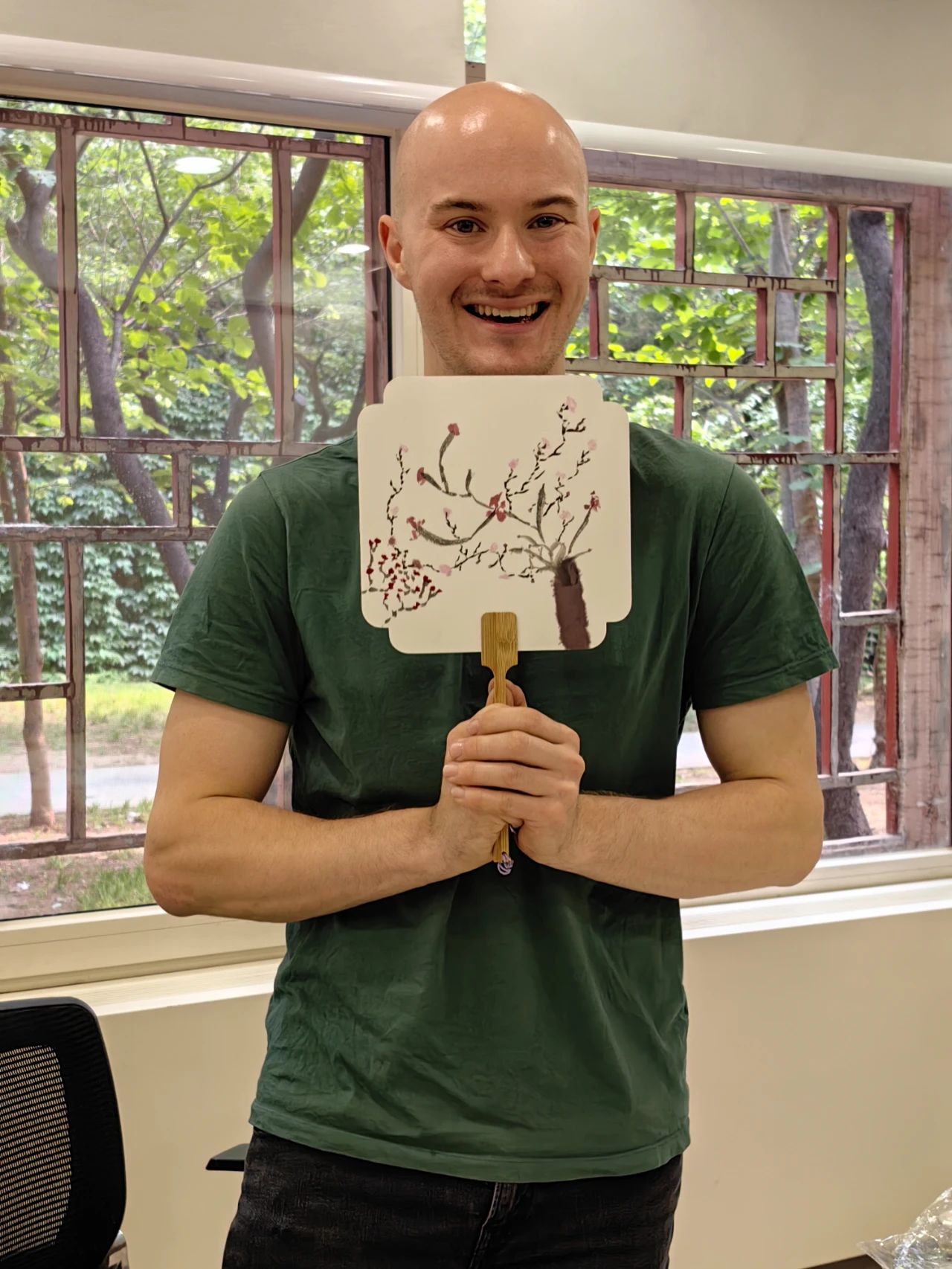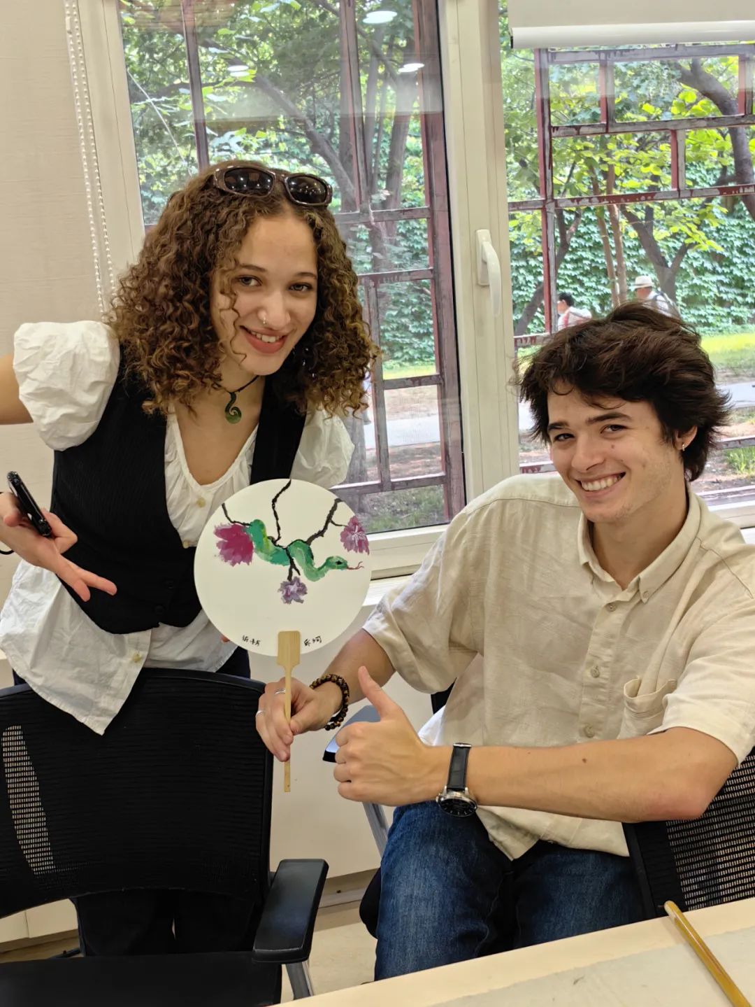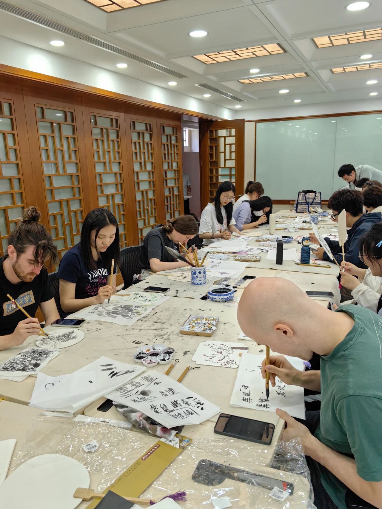 5月25日,研究生会执委会携手北京大学学生书画协会,于静园四院举办画扇体验活动。二十余名中外学生齐聚一堂,挥毫泼墨,亲手绘制水墨团扇。活动为热爱中国书画的同学们搭建了交流平台,让大家在亲身实践中沉浸式感受中国传统书画艺术的独特魅力,增进了文化理解与彼此间的友谊。