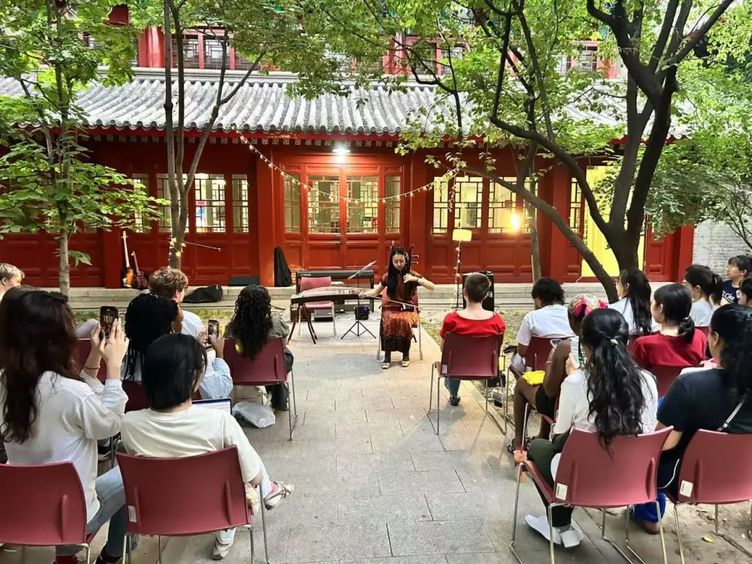 5月30日晚,静园四院迎来艺术周压轴音乐会。演出伊始,中国传统乐器率先登场,古筝的清越之音与二胡的悠扬旋律在古老院落中交织回荡,奏响一曲曲传统经典曲目。紧接着,电吉他、键盘奏响旋律,搭配深厚深情的歌声,瞬间将现场氛围推向高潮。东西方音乐在夏夜的晚风里激情碰撞、完美交融。观众们纷纷随着节奏挥舞手机灯光,点点星光与舞台上的精彩演出交相辉映,为这场为期一周的艺术周画上了令人难忘的句号。