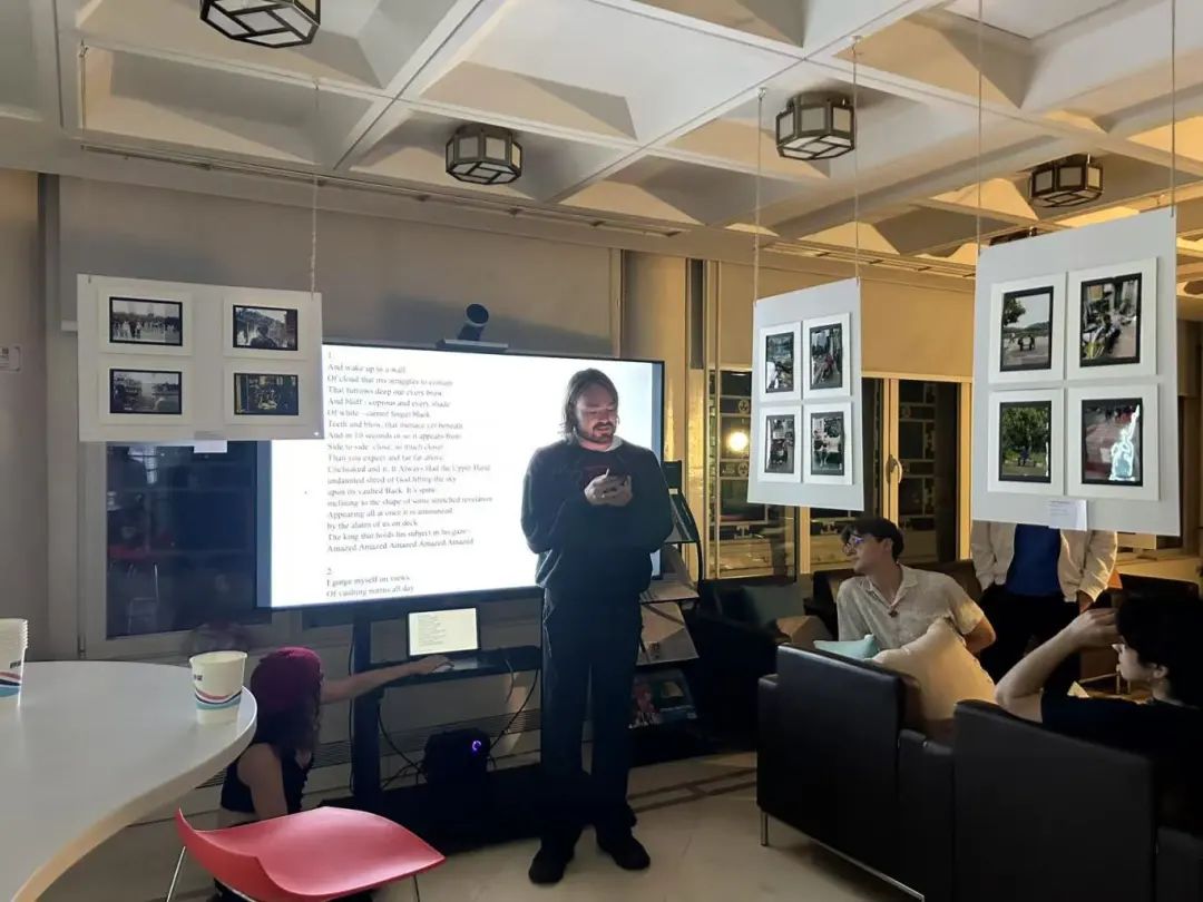 5月25日晚,研究生会执委会于静园四院举办了摄影展启动仪式。活动开场,四位同学带来了原创诗歌,并现场为观众进行朗诵。诗歌以多种语言呈现,诠释了燕京学堂多元包容的特质。温馨热烈的氛围里,观众们沉浸在这场跨越语言的艺术对话中,真切感受着创作者们的才华。