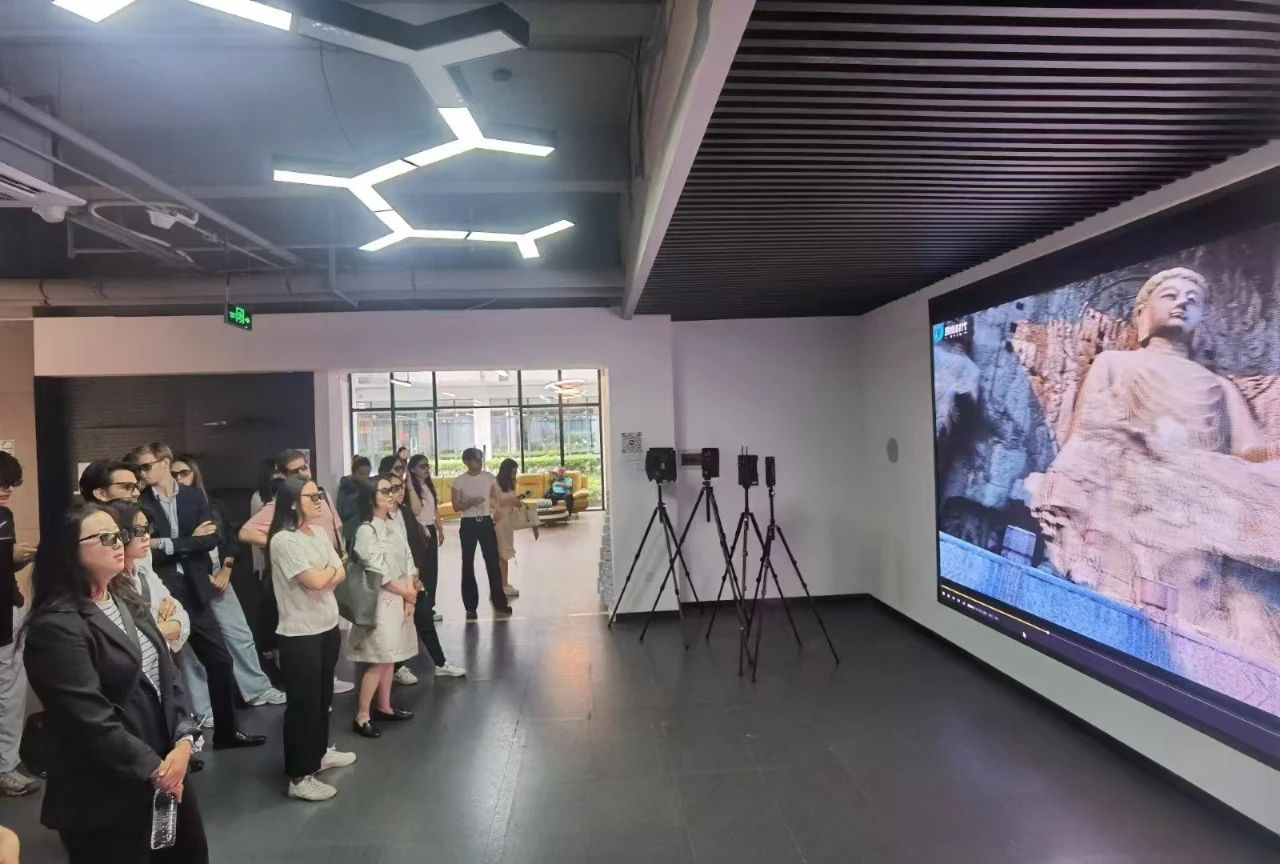 在中德(珠海)人工智能研究院有限公司,同学们通过VR文物保护技术,领略了文化传承的全新途径。同学们戴上 3D 设备,仿佛瞬间穿越至千年古迹现场。人工智能三维数字化技术将褪色建筑的色彩一一复原,使破损器物的裂痕与纹理在数字空间中完整重现。技术创新打破了博物馆的物理界限,让古老文明与现代文明进行跨越时空的对话。