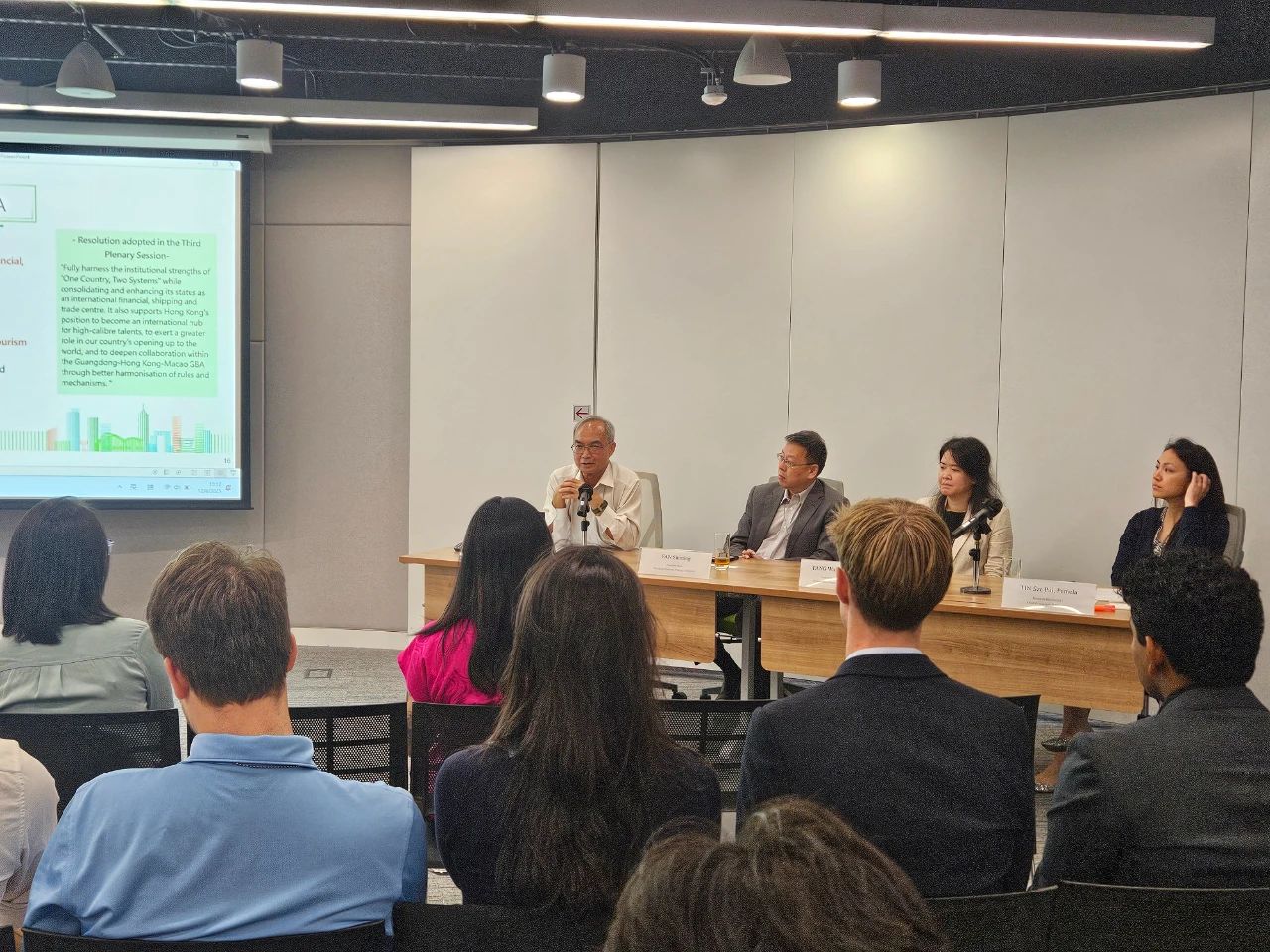 为进一步了解香港政策治理体系,师生们走进香港特别行政区政府特首政策组(CEPU)。特首政策组助理组长关家明(Nicholas Kwan)、研究主任田诗蓓(Pamela Tin)以系统化的框架为同学们详细解读了特首政策组的工作内容以及香港政府未来工作重点,深入探讨了香港在粤港澳大湾区建设中的功能定位及其在我国国家战略中不可替代的作用。在随后的互动问答环节,同学们围绕在港就业机会、人才引进政策、社会保障制度等话题踊跃提问,专家组结合政策框架与实际案例进行了详尽解答。