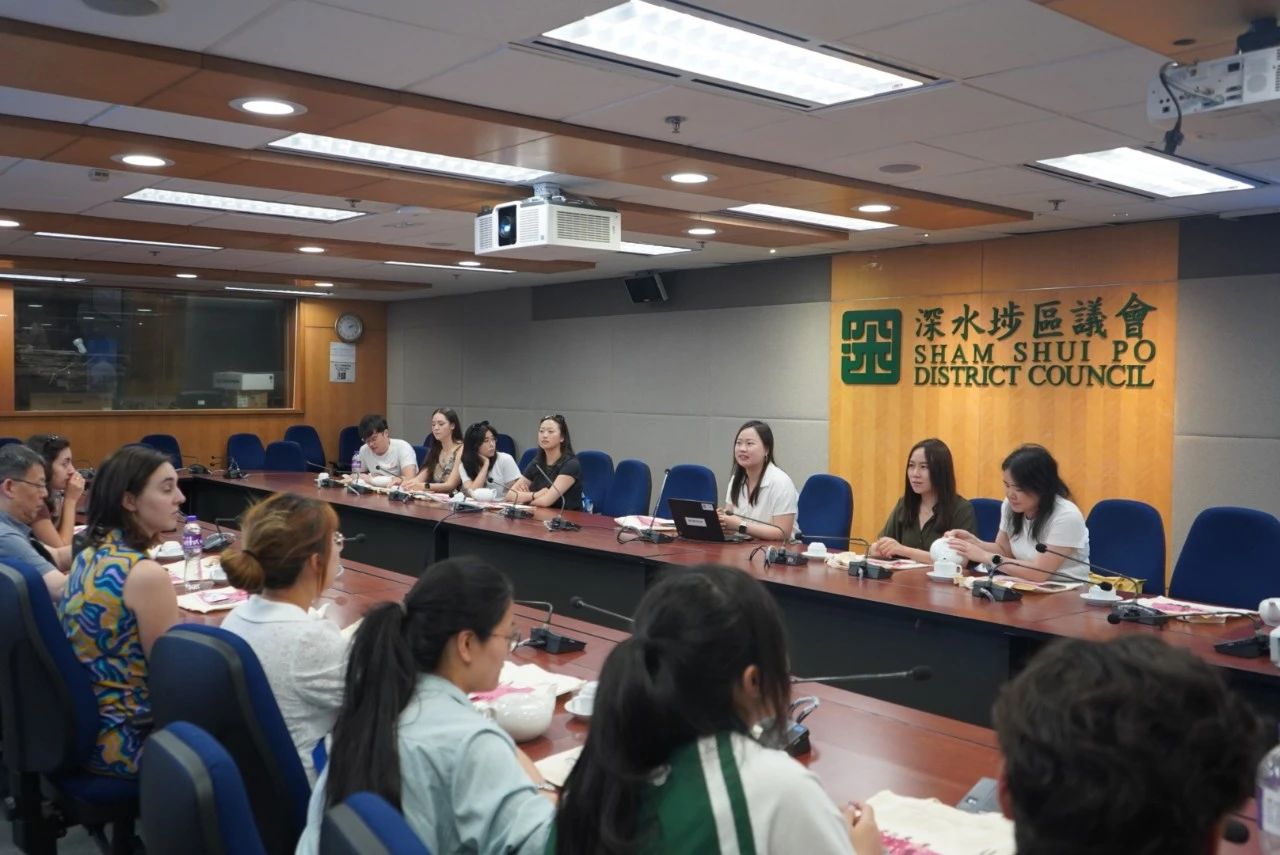 访问团来到香港深水埗区,深入了解粤港澳大湾区的城市治理与社区建设情况。在深水埗民政处,民政事务助理专员陈乐桐向师生们介绍了该区的历史文化、地域特色和未来发展方向。通过实地参访,师生们对香港历史文化保护与社区再造的创新实践有了更直观的感悟。