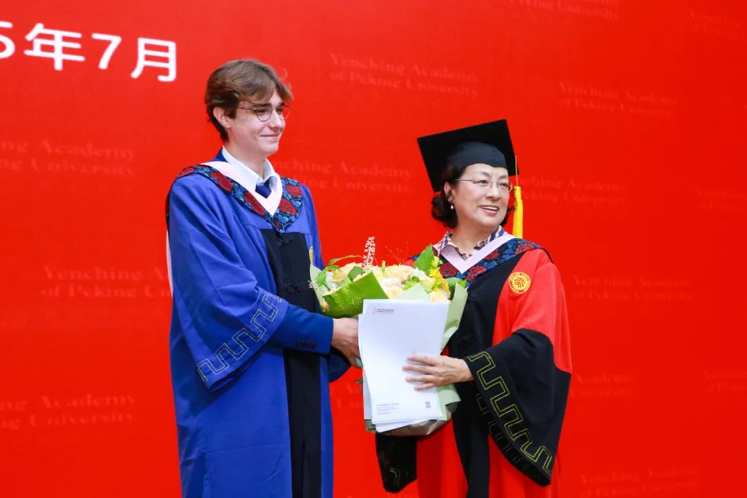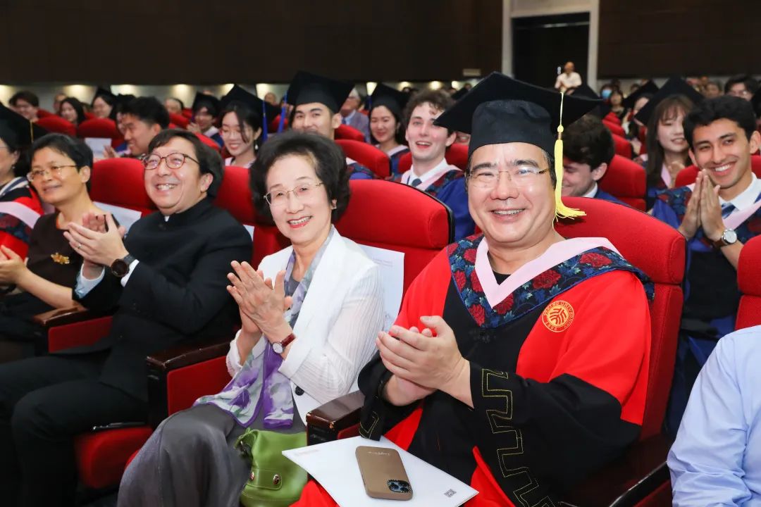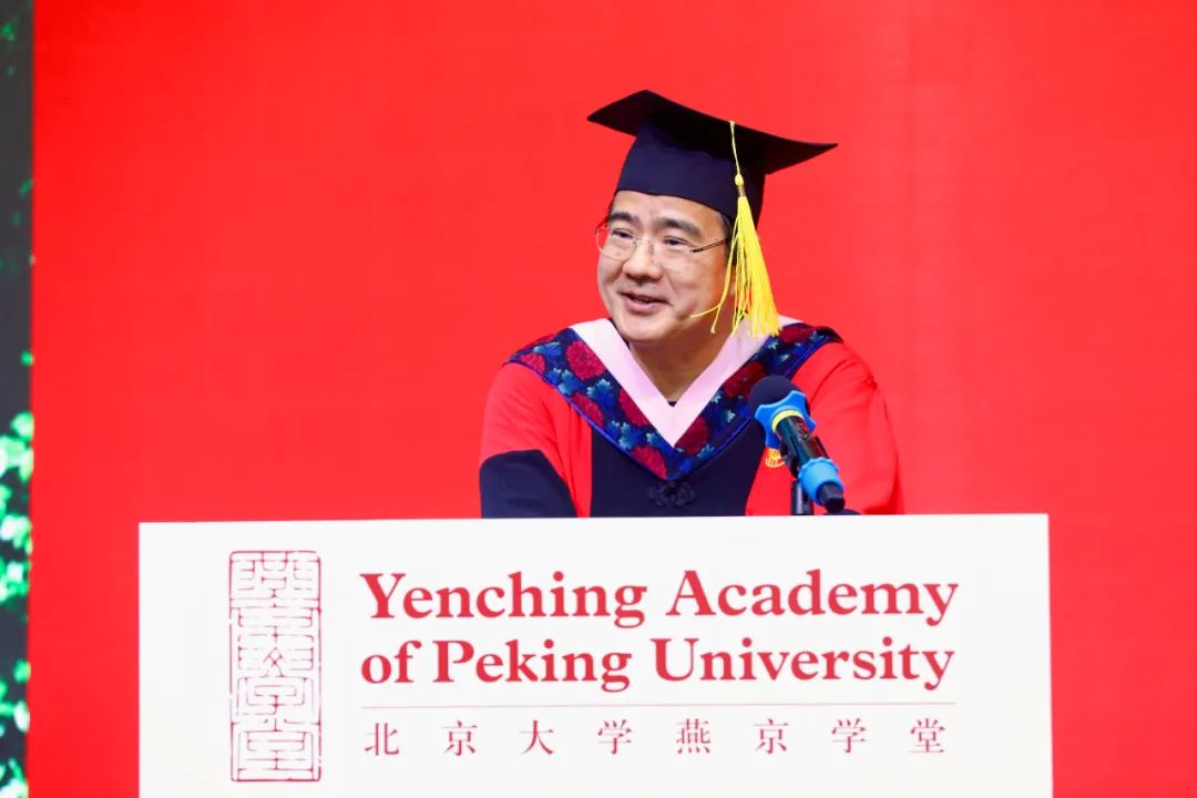 回首过去两年,董强院长始终陪伴在同学们身边,亲眼见证大家在学业等多方面的显著成长与丰硕收获。作为《论语》法语译者及燕京学堂现任院长,他以“吾日三省吾身”为引,回溯学堂11年发展历程:从燕京学堂成立伊始起,就得到了学校与社会各界的多方支持,各级领导、同行大力投入,尤其是袁明老师带领团队让燕京学堂走上了健康发展的道路。自己接过发展的接力棒,倍感责任重大,继续带领团队不断向国内外顶尖教育机构交流取经,力求一步一个脚印,为学堂打造更好的明天。他热情邀请同学们成为校友之后,多回来看看,时刻感受学堂的发展与变化。他殷切寄语同学们,要永葆雄心,敢于挑战看似不可能完成的目标,保持对文明的信心,在巨大的不确定性中,为未来更伟大的时代的到来而作出贡献;秉持耐心,在纷繁复杂的时代浪潮中保持清醒从容;心怀爱心,用善意温暖世界、守护美好。他还强调,务必坚守善意与诚意——善意是滋养人际关系与个人成长的阳光雨露,诚意则是探索真理、认识自我的根基所在。他鼓励同学们抛开“三心二意”的浮躁,始终以坚定纯粹之心追求真理、热爱自由、投身服务,生出超越小我、胸怀人类之意。