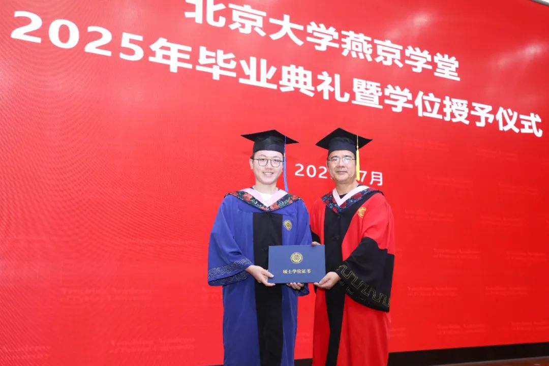 一段记录两年求学时光的纪念短片为典礼拉开序幕。镜头里,定格了新生班会上初次相识的会心微笑、与导师见面时求知若渴的专注眼神、课堂上思想碰撞的智慧火花、运动场上挥洒汗水的矫健身姿、实地调研中探索真知的坚定脚步……这些珍贵的片段,串联起2025届毕业生在燕园的共同记忆。