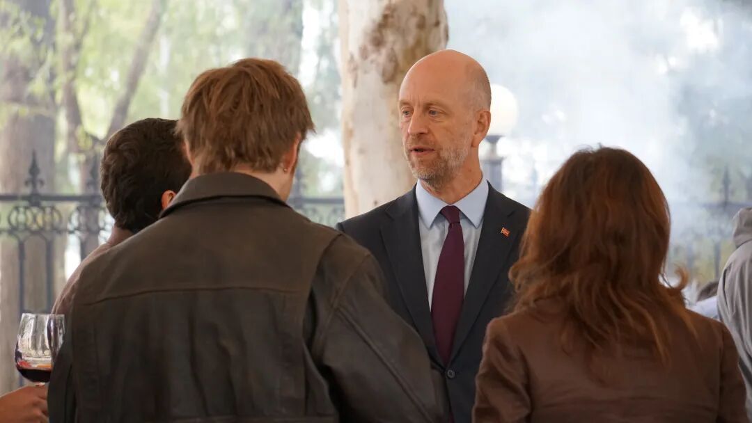 2025年10月23日,北京大学燕京学堂师生来到北京适园公馆,参加与察哈尔学会共同主办的“公共外交对话”活动。挪威驻华大使H.E. Mr. Vebjørn Dysvik(戴伟恩)应邀就国际冲突与和解发表主题演讲,察哈尔学会秘书长张建国、前秘书长张国斌、学术委员会副主任柯银斌、副秘书长马文生,北京大学燕京学堂副院长Brent Haas(何必)、院长助理左婧、学生工作办公室主任杜岩松、副主任黄雪凇、学生活动主管王思懿以及来自10多个不同国家的30名中外学生代表参加会议。