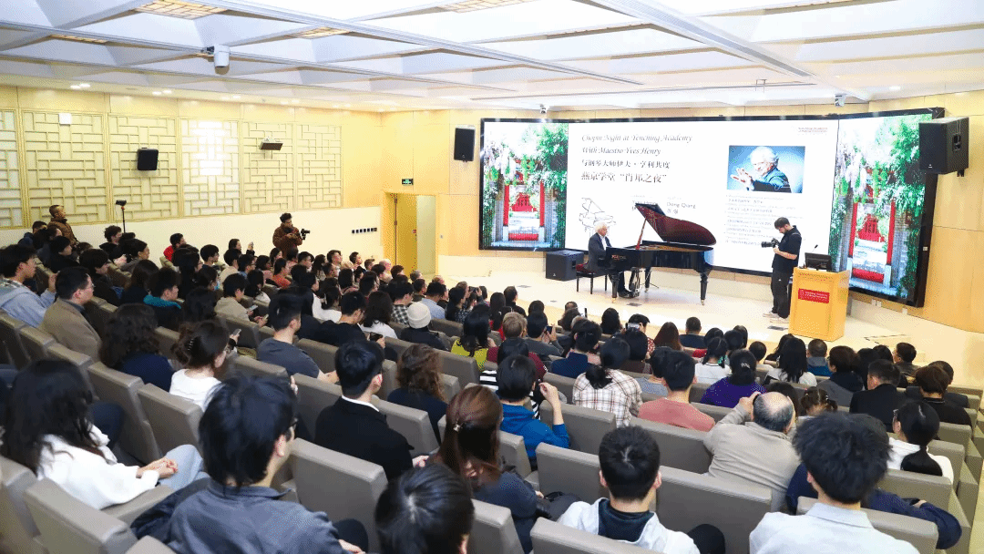 研讨会后,与会嘉宾移步北京大学第二体育馆报告厅,在燕京学堂举办的“肖邦之夜”钢琴音乐会上,与世界钢琴大师伊夫·亨利一起进入肖邦的音乐世界。
