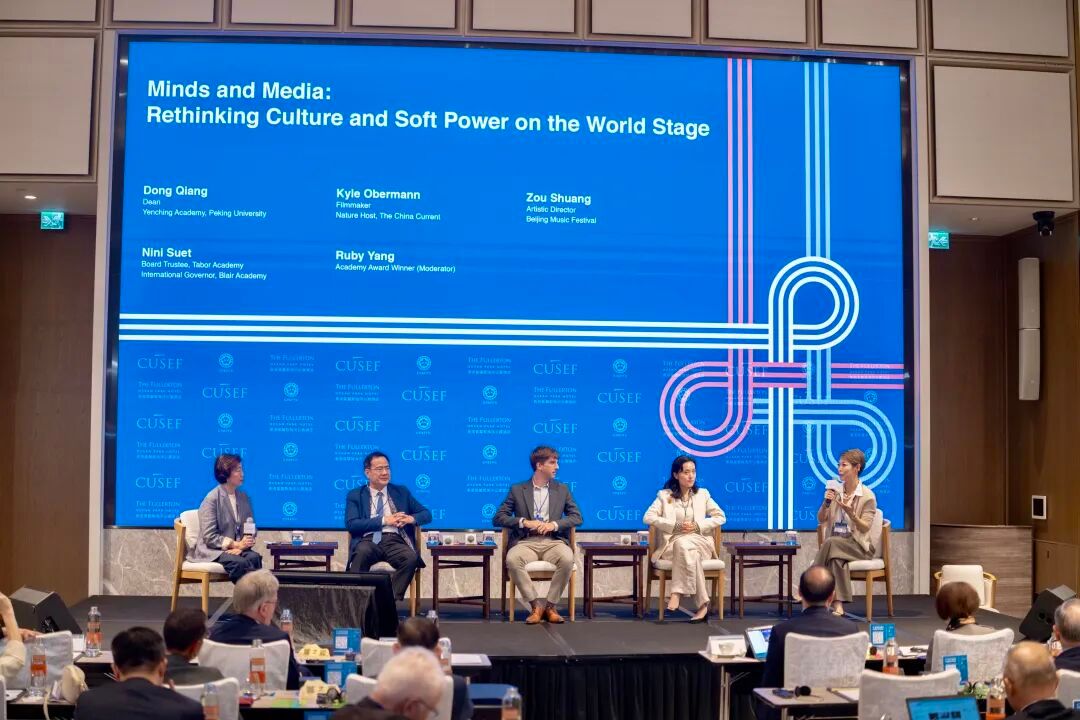 11月17日下午,专题讨论单元“思维与媒介:世界舞台上的文化与软实力再思考”聚焦人文、艺术,讨论软实力在当今国际教育中的重要性。董强,美籍自然保护摄影师、纪录片制作者兼记者欧阳凯,北京国际音乐节总监邹爽,以及融尚私塾创始人兼CEO雪麑就此议题进行讨论。该单元由奥斯卡最佳纪录短片导演奖获得者、香港大学新闻与传媒中心主任杨紫烨主持。