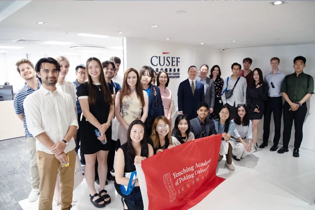 燕京学堂与中美交流基金会有良好的友好合作。2025年6月8日至13日,在中美交流基金会的大力支持下,学堂师生访问团赴香港特别行政区、广东省珠海市开展实地调研。副院长范士明、院长助理左婧带队,20名来自世界各地的青年学生通过为期六天的考察,深入了解“一国两制”在香港的成功实践,感受粤港澳大湾区在科技创新、文化融合等领域的蓬勃活力。2025年7月11日,董强在静园三院接待到访燕京学堂的中美交流基金会总裁周建成一行。同时到访的还有中国驻纽约前总领事(大使级)黄屏。